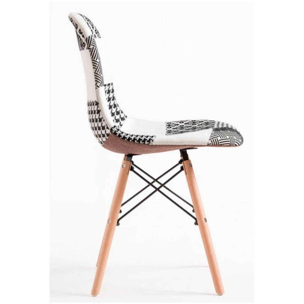 Rejuvenate your home with modern seating that will be a lovely addition as a patchwork chair in your living room, den, library, or sitting room. This chair will add an attractive statement to your kitchen or dining room. The Chrono Patchwork Eiffel Chair is a proven favourite - the moulded polypropylene body is covered with fabric, giving you intelligent support where you need it most and delivering exceptional comfort whether you're sitting around the table or relaxing with a book. The chair is finished in our durable and iconic patchwork material for an eye-catching finish that will make a statement in any home. These new Chrono chairs come with the iconic 'Eiffel' style legs with plastic feet to ensure your floor is kept unmarked. Made from premium quality materials the chair delivers superior comfort and durability which makes it perfect for everyday use. Solid wooden legs with an internal metal frame ensure that the chair is also sustainable and long-lasting.