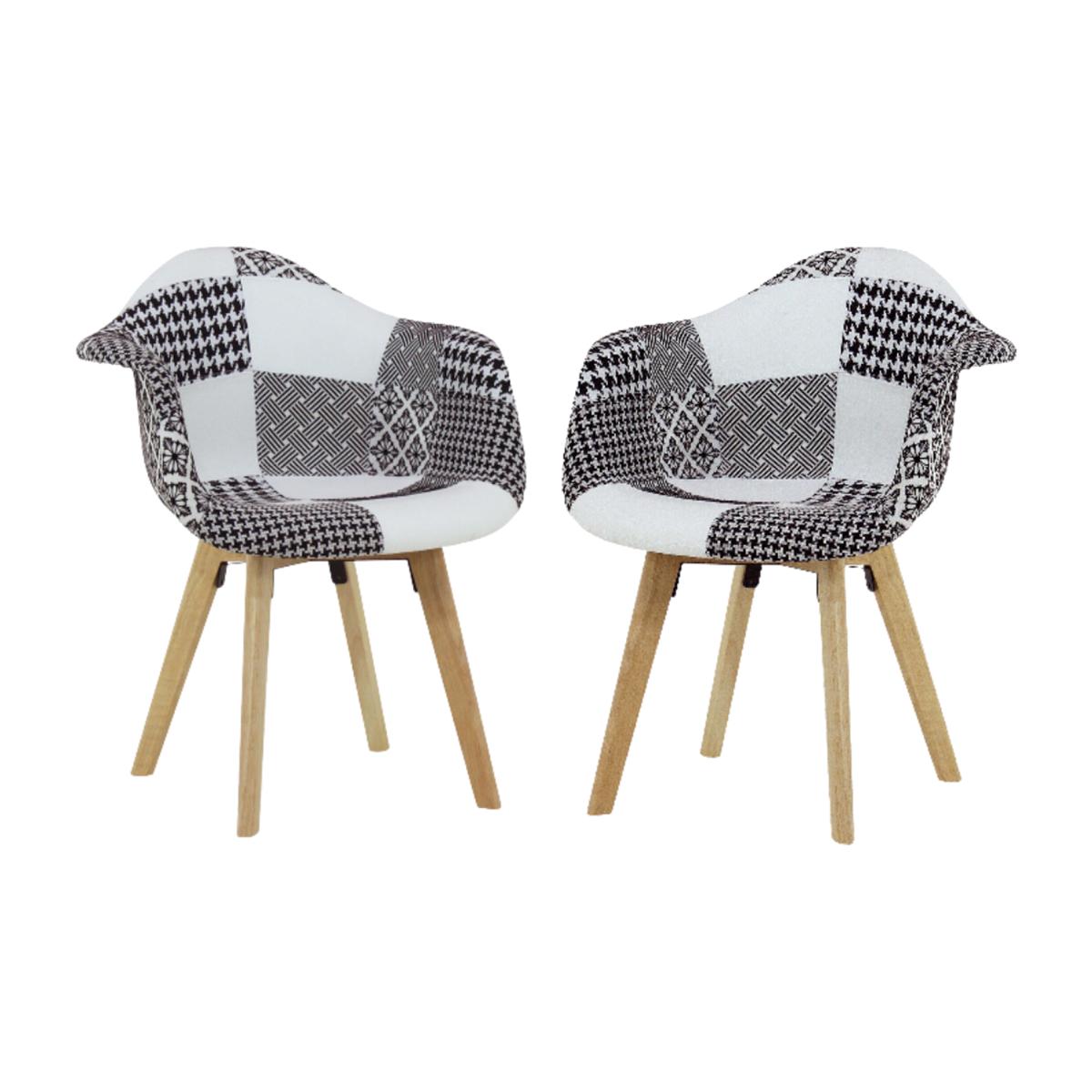 Rejuvenate your home with modern seating that will be a lovely addition as a patchwork chair in your living room, den, library, or sitting room. This chair will add an attractive statement to your kitchen or dining room. Aesthetically pleasing to the eye and attention-seeking. The union between solid workmanship and high quality. Upholstered in a simple black and white funky design. Stylish, functional, and ultra-trendy. Our Patchwork Tulip Tub Chair is a bestseller. The moulded polypropylene shell is covered with fabric - providing that extra intelligent support where it's needed most. Supported with solid wooden legs. Sit in comfort around the dining table or cuddle up with your favourite book. The durable and iconic design is eye-catching and will surely make a statement in your home.
