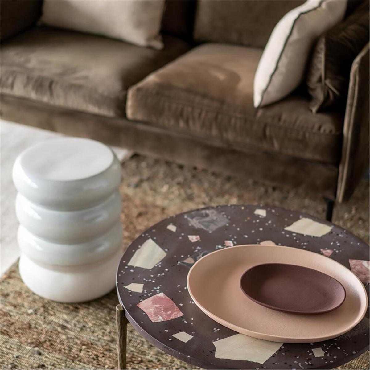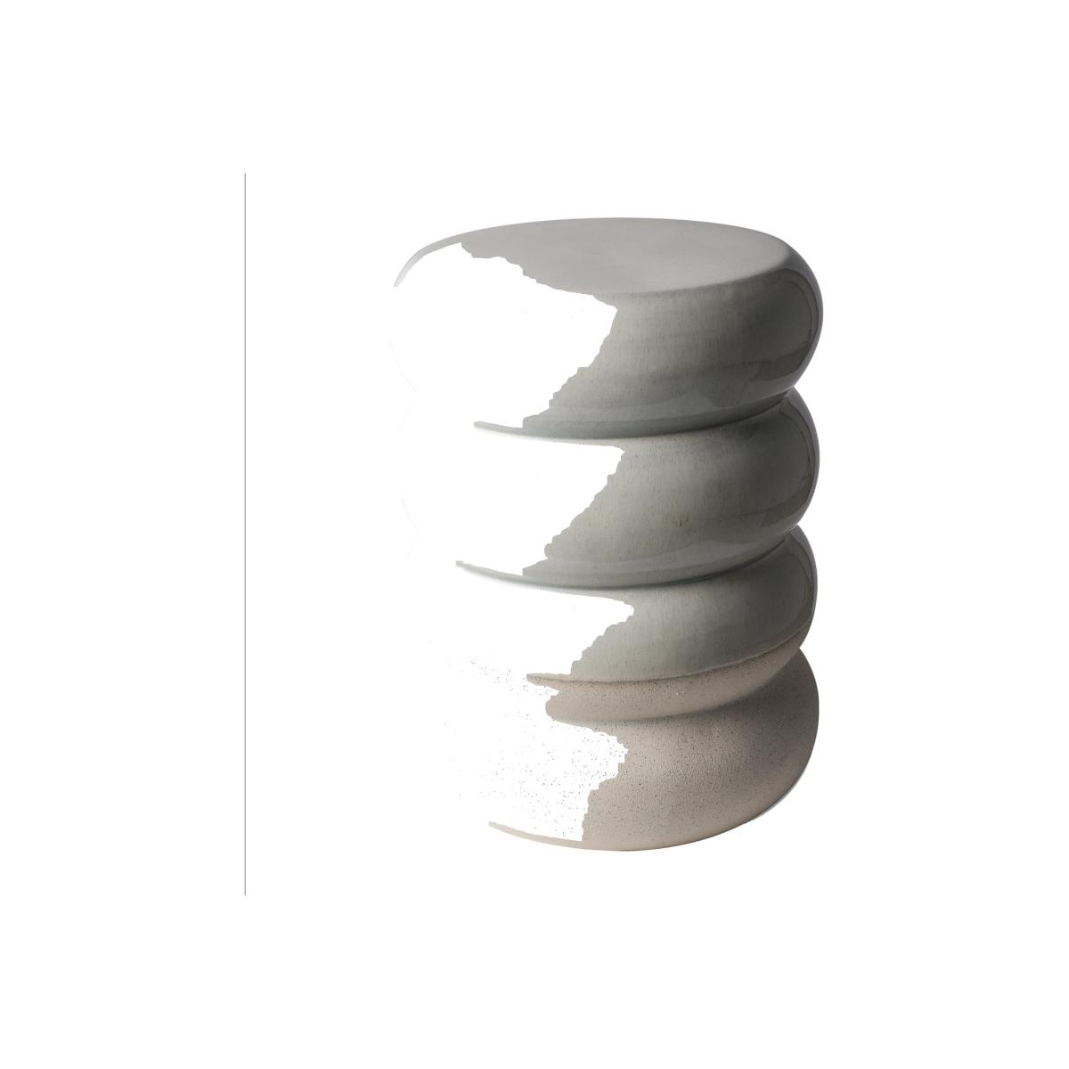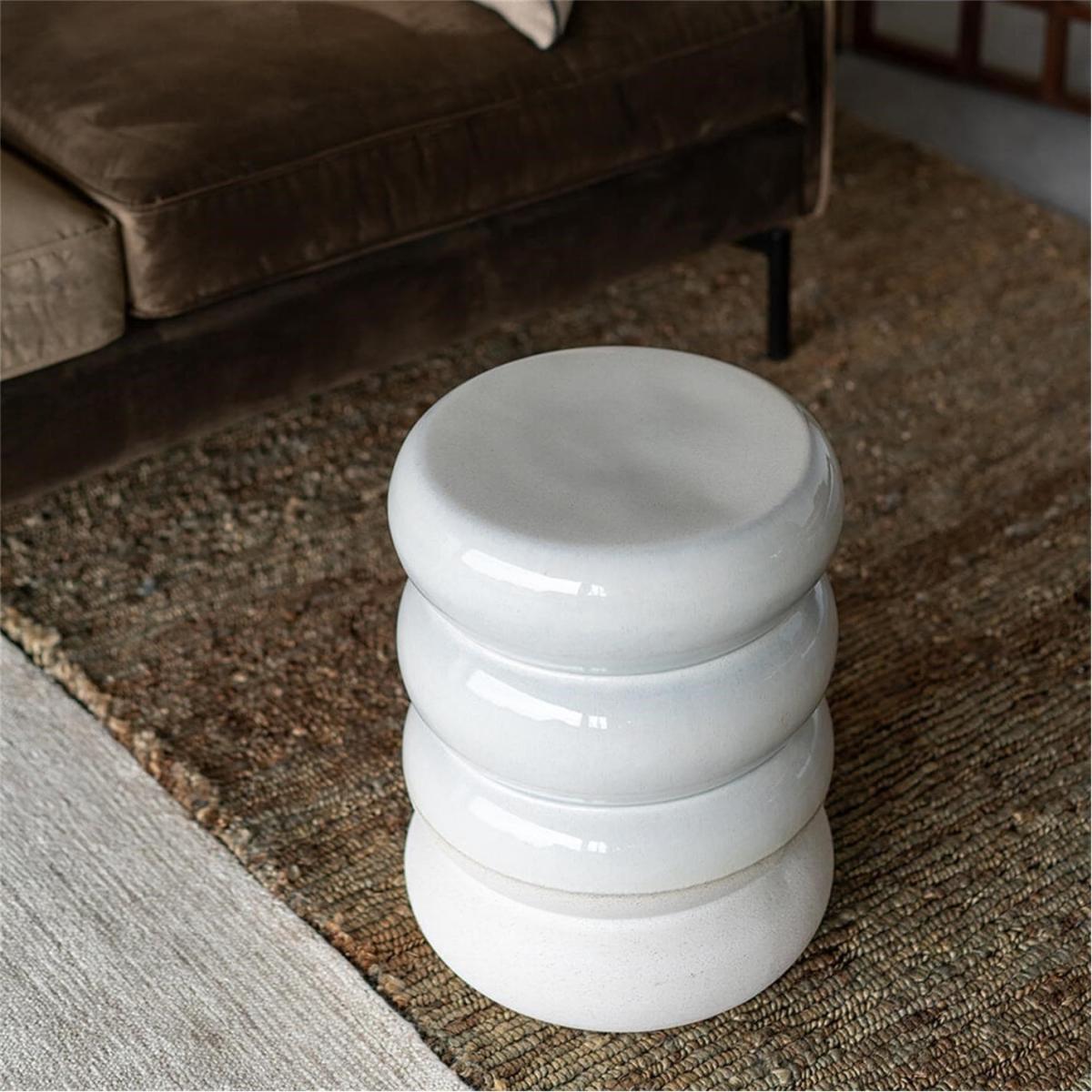 I love the chubby for its clean, stacked silhouette and gentle colour-blocking - it brings texture without overwhelming a room. It works particularly well in contemporary, Scandi or relaxed boho schemes, adding a sculptural accent beside sleeker furniture. For styling, use it as an extra seat or low side table: top with a small plant or a neat stack of books to highlight the glaze, or layer a soft cushion for added comfort. It tucks neatly under coffee tables and sits perfectly in a reading nook or beside a sofa, especially when paired with rattan or woven textiles to soften the ceramic look.