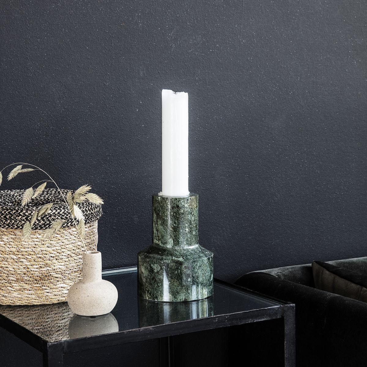 These Chunk candle sticks from House Doctor are made out of a unique green marble that gives each piece a rather distinct and striking look. The Chunk fits candles that are 4 cm in diameter. Beautiful on its own, or create a breathtaking arrangement with an array of candlesticks of varying materials and heights.