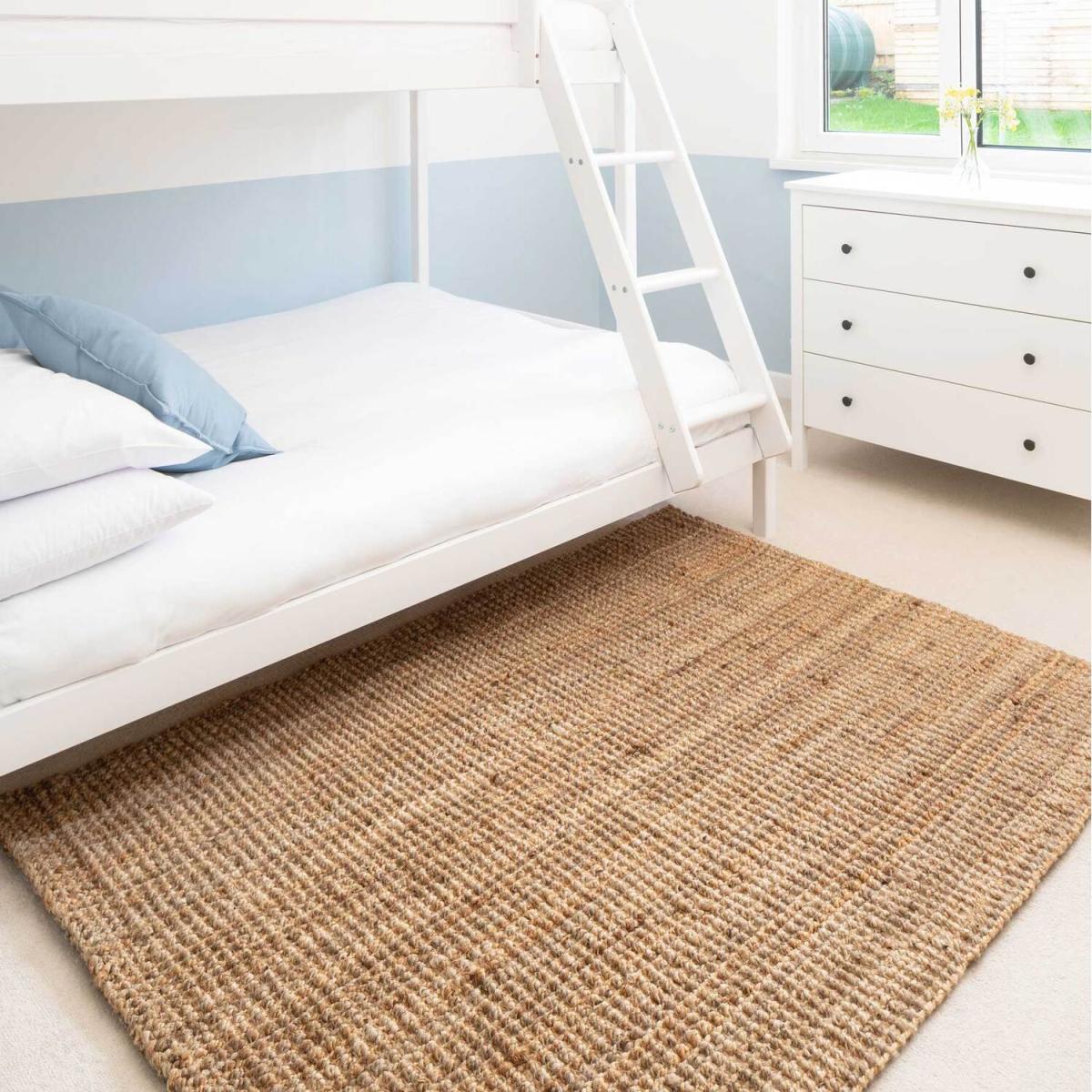 The chunky boucle natural jute rug is a fantastic choice for adding texture and warmth to a variety of interiors. I love its rustic feel, which works particularly well in cosy, minimalist, or country-inspired spaces. It’s versatile enough to sit under a sofa or dining table, elevating a room with its neutral beige tone and tactile surface. For styling tips, consider layering it over a larger, softer underlay to enhance comfort underfoot, or pair with natural wood or woven accessories for a cohesive, organic look. Its durability makes it practical for high-traffic areas, whilst the neutral shade keeps it versatile for different colour schemes.