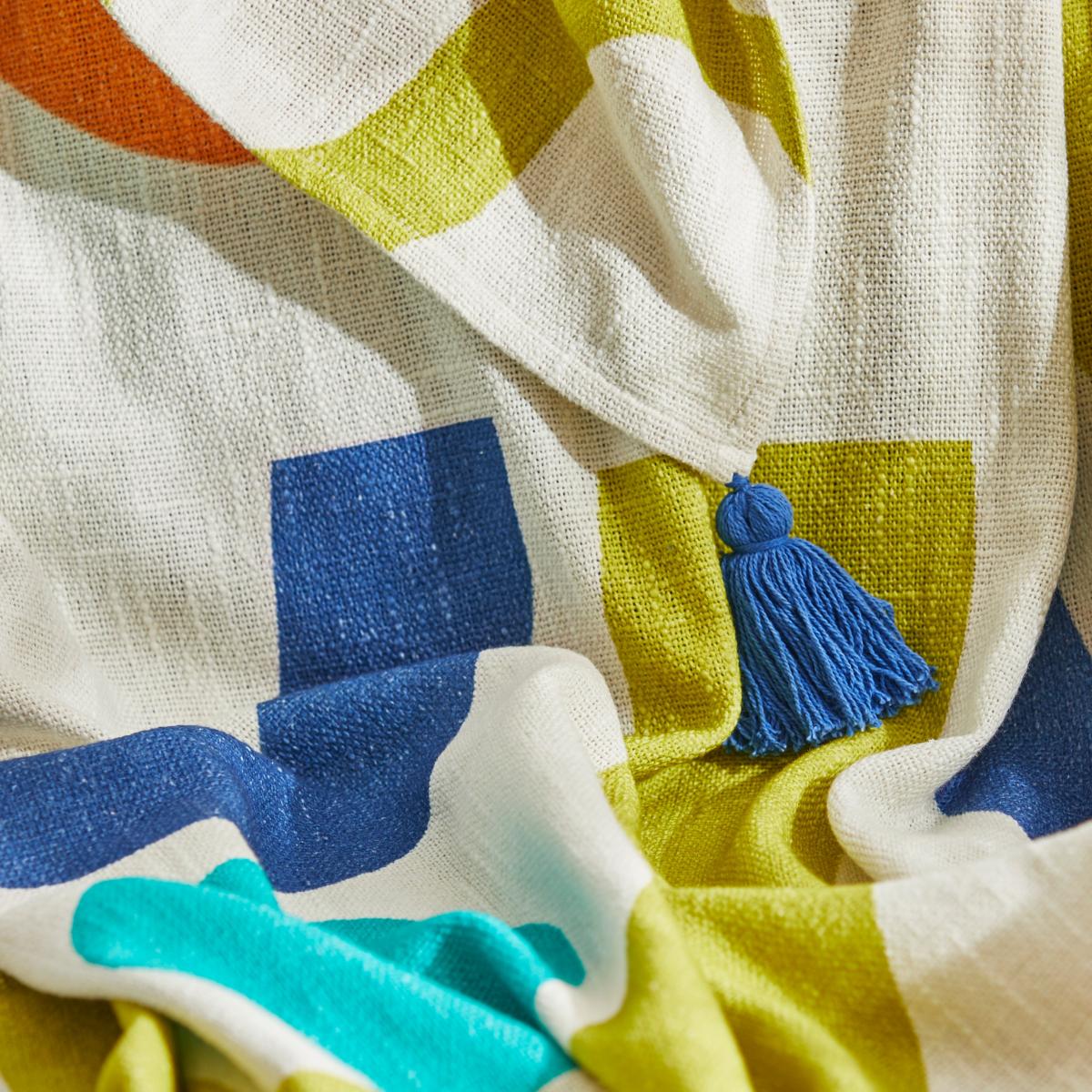 Chunky Cotton Tassel Print Throw Elements MultiColoured