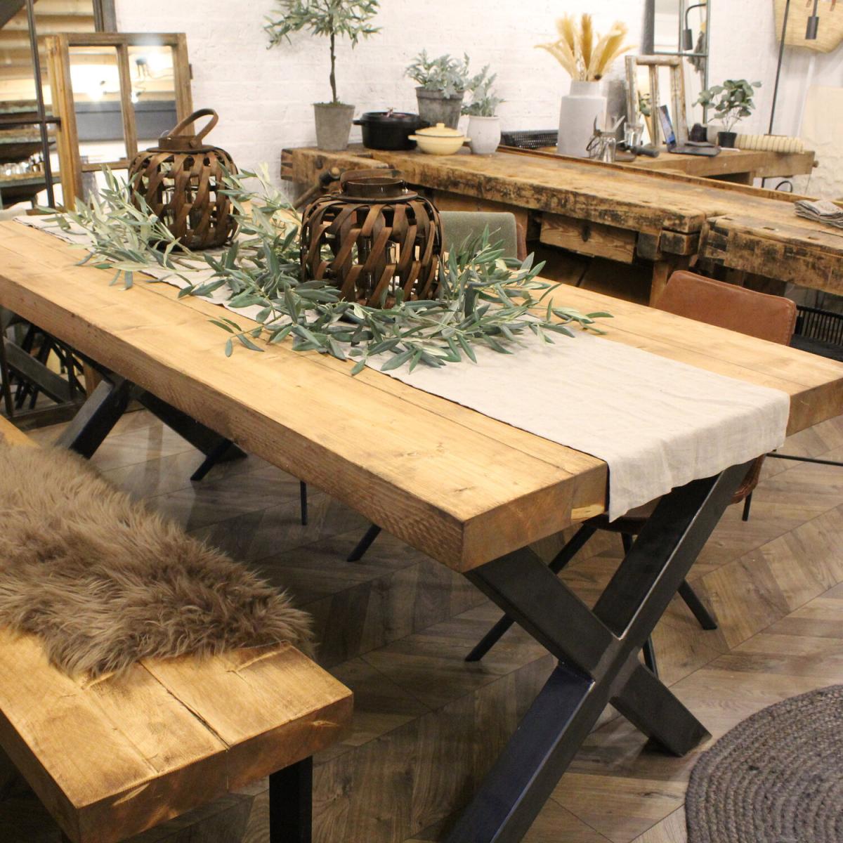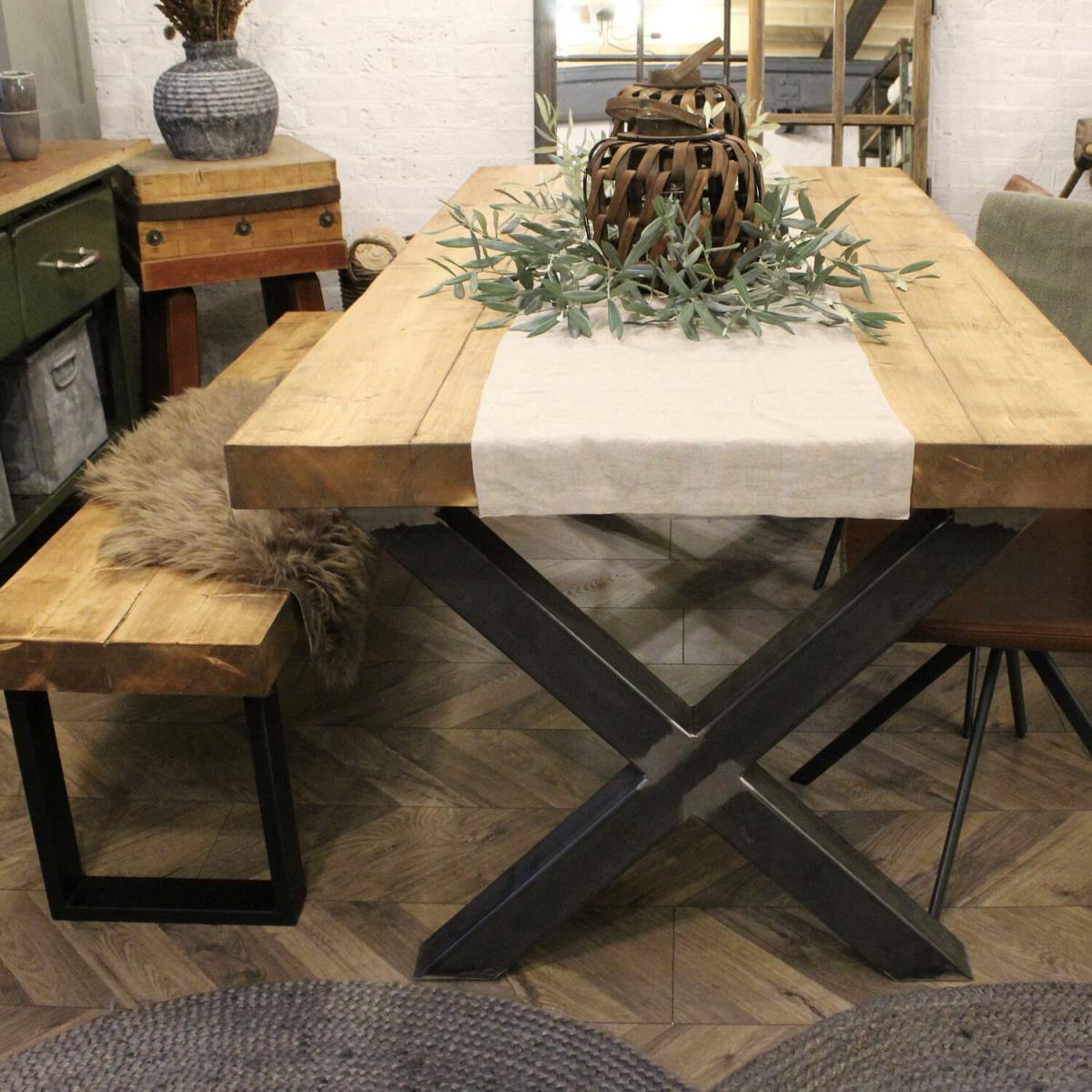 The chunky dining table and bench set is our best-selling bundle. Dependable, boasting industrial style X frame steel legs showing dominance in the dining area to make it a real stand-out piece. For those family dinners, romantic meals or helping the little ones with homework, this is the perfect all-rounder that will stand the test of time. Beautifully handcrafted by our passionate team at TRL Handmade Furniture and finished using an enhancing oil and wax which penetrates the timber to create protective layers throughout.