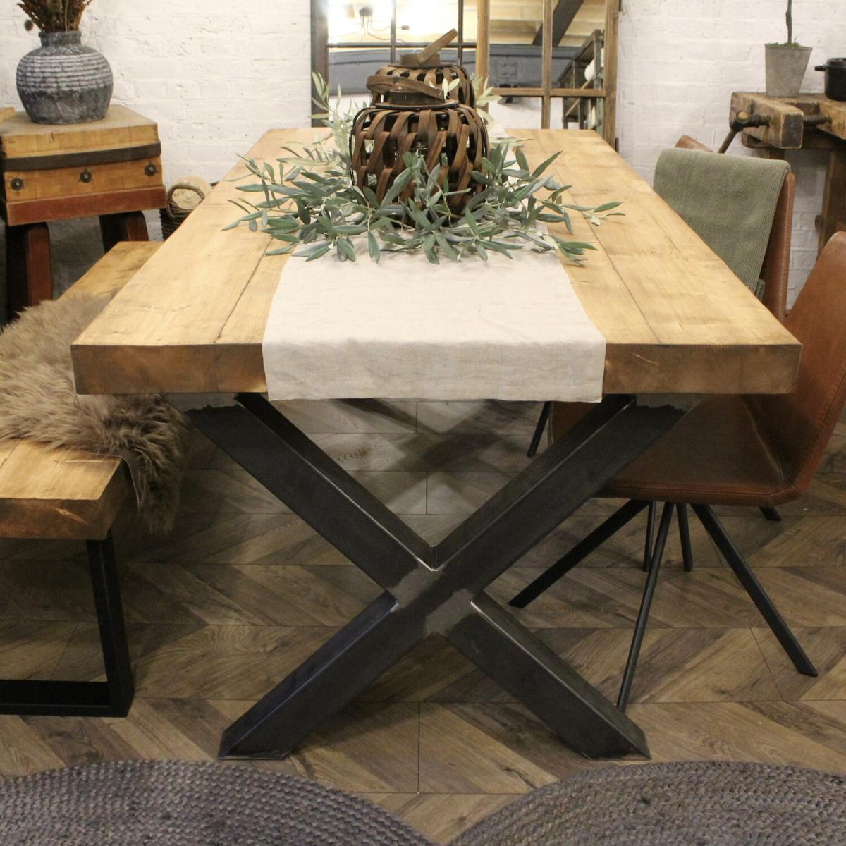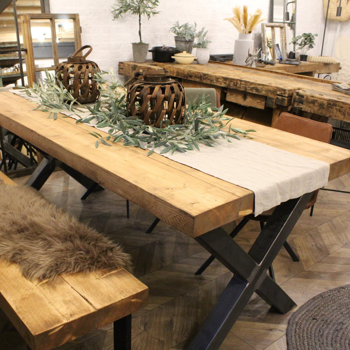 The chunky dining table and bench set is our best-selling bundle. Dependable, boasting industrial style X frame steel legs showing dominance in the dining area to make it a real stand-out piece. For those family dinners, romantic meals or helping the little ones with homework, this is the perfect all-rounder that will stand the test of time. Beautifully handcrafted by our passionate team at TRL Handmade Furniture and finished using an enhancing oil and wax which penetrates the timber to create protective layers throughout.