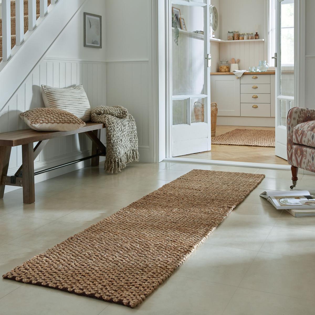 This chunky jute runner is a practical choice for adding texture and warmth to a variety of interiors, particularly in rustic, coastal, or Scandi-inspired spaces. I love how the bitter chocolate hue grounds a neutral colour palette and creates a cosy, inviting feel underfoot. It works well in hallways, kitchens, or open-plan living areas, especially where durability is key, as jute is tough and natural. For styling tips, keep it simple-pair with wicker baskets, linen textiles, or wooden furniture to enhance its organic vibe. Remember to rotate it regularly to maintain its appearance and consider adding a non-slip rug pad underneath for safety and to prevent sliding on smooth flooring.