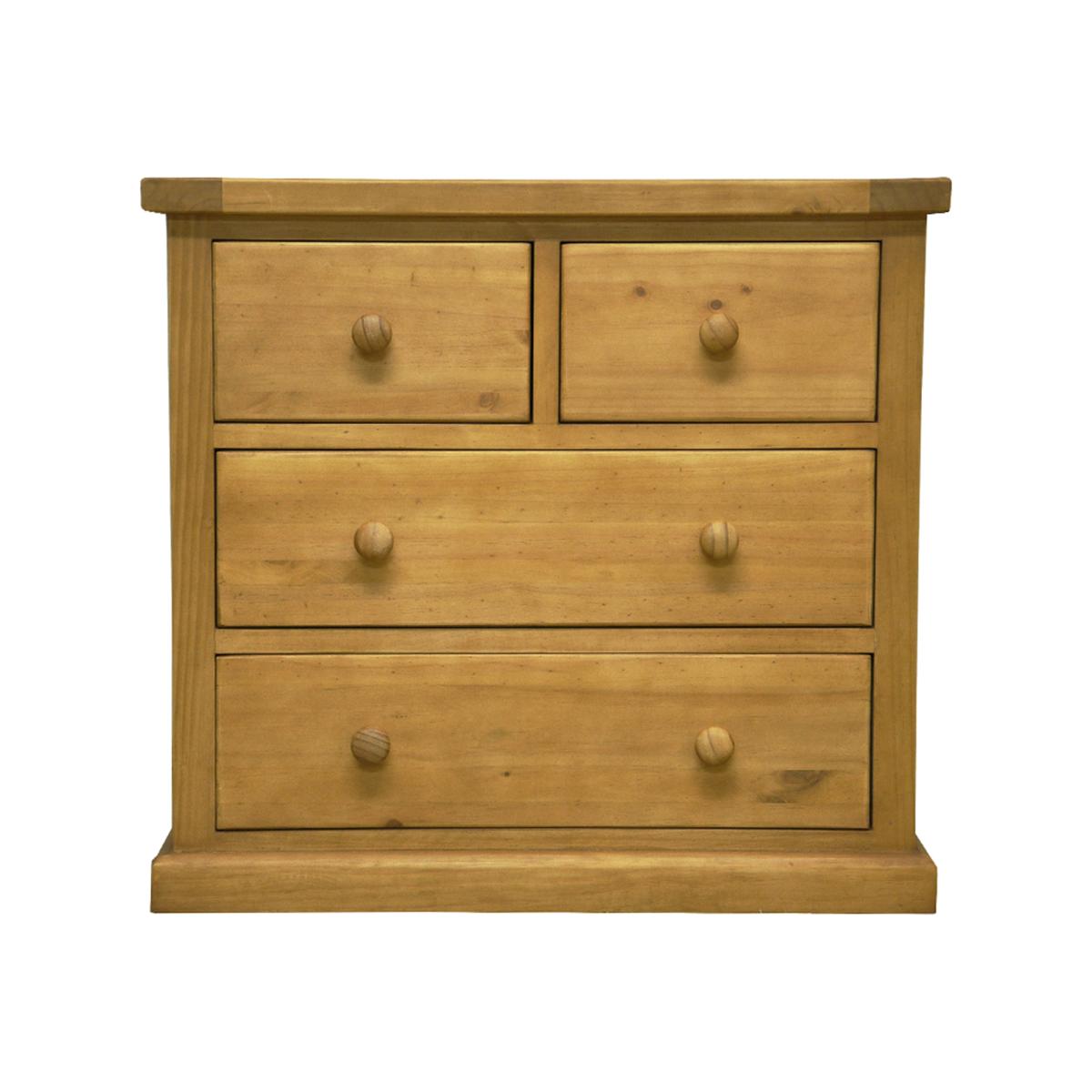 The Chunky Pine 2 Over 2 Chest offers a perfect blend of style and functionality, crafted from solid pine wood. This versatile chest of drawers features a classic design with two smaller drawers positioned above two larger ones, providing a practical solution for organising your clothing and bedroom essentials. The chunky frame, accentuated by the natural wood grain, brings a rustic charm to your interior, creating a warm and welcoming atmosphere. With dimensions of 80cm in width and 74cm in height, this chest fits seamlessly into various bedroom sizes, offering ample storage without overwhelming the space. The robust pine construction ensures long-lasting durability, while the rustic aesthetic complements a range of interior styles, from traditional to contemporary.