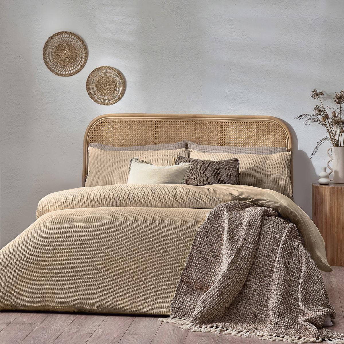 Chunky Waffle 100 Cotton Duvet Set - Linen / Double