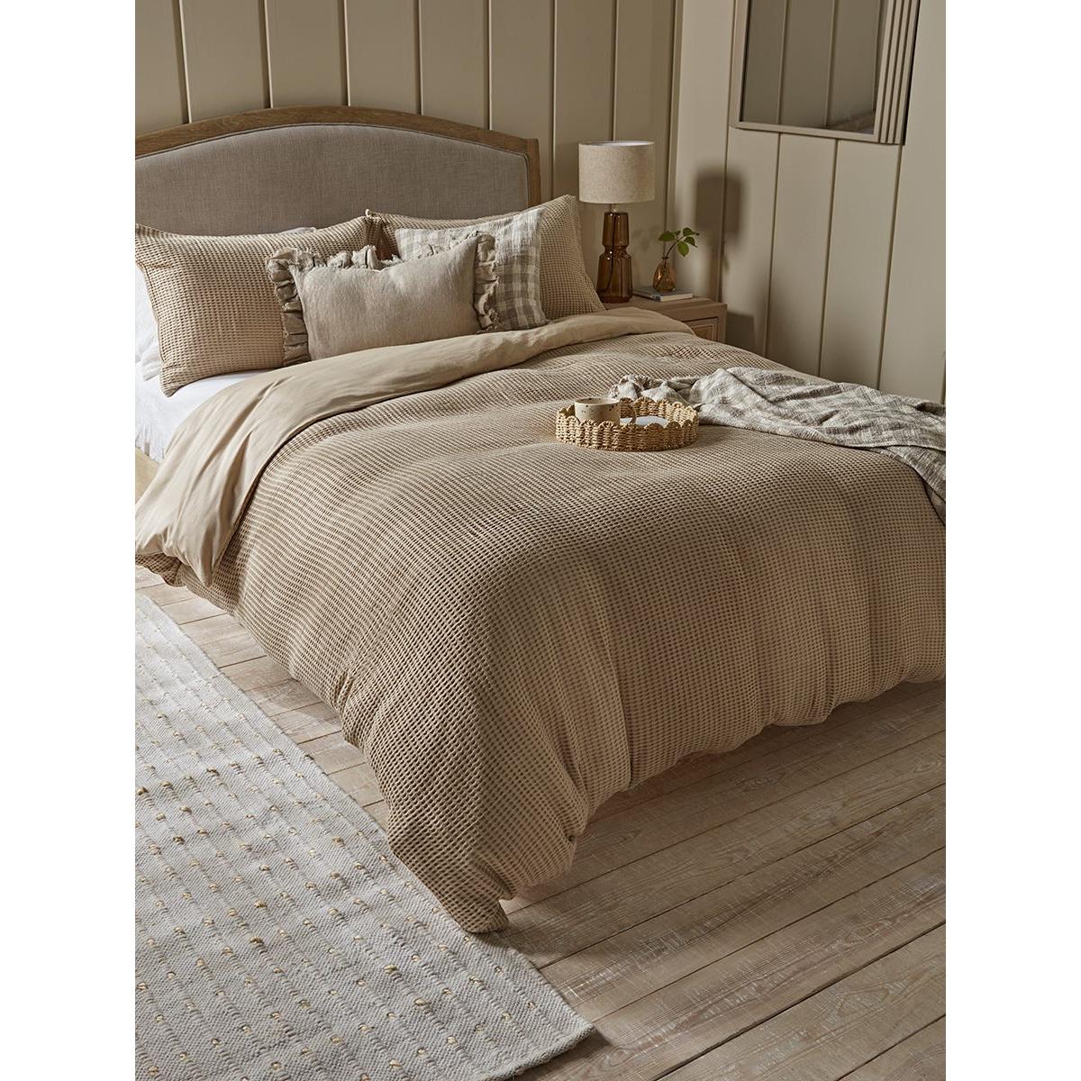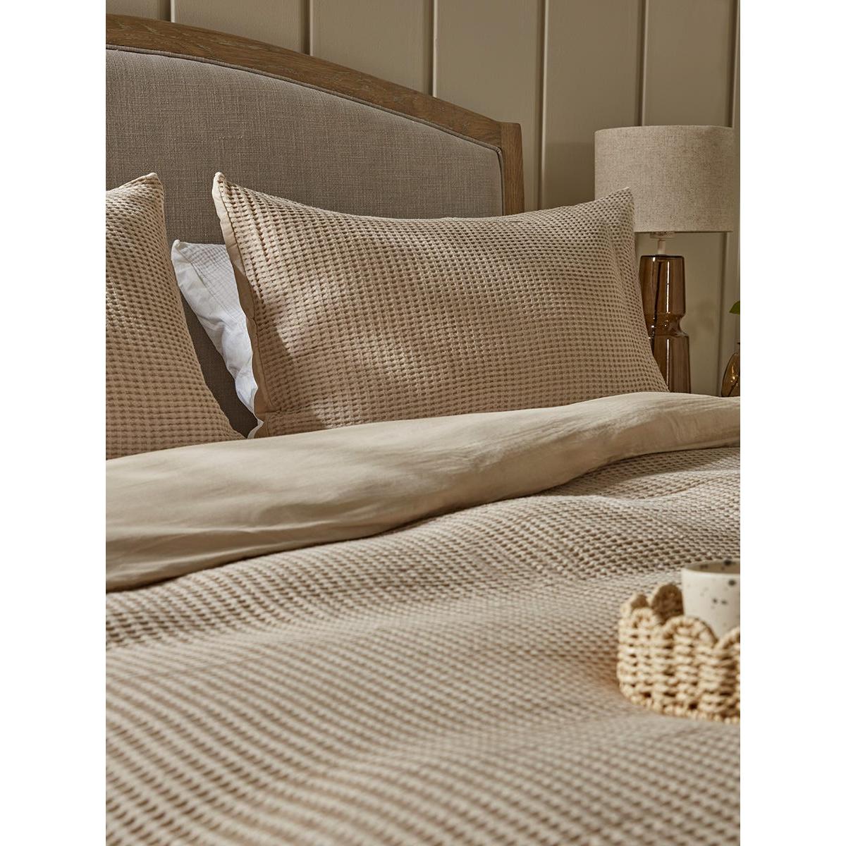Soft oatmeal tones melt into a delicate waffle texture to create this super king size duvet set. With a duvet cover and two pillowcases, this duvet set is crafted from a luxurious cotton for a supersoft and warming set that will keep you cosy through the night and create a relaxing and restorative space for you to rest.