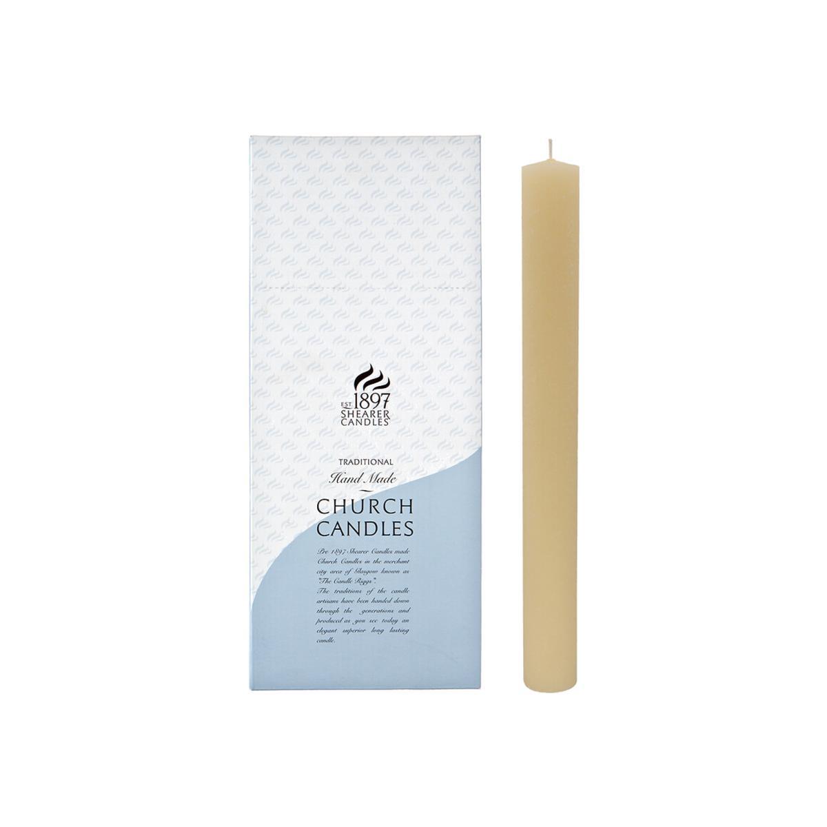 This product will be dispatched by one of our trusted suppliers. You’ll be contacted by their selected courier about your delivery. Traditional artisan candle making techniques have been handed down through the generations to produce this elegant, superior, long lasting ivory church candle perfect for larger candelabras. This church dinner candle comes in a luxurious pack of 8 and burns for approx 30 hours. Product Dimensions: Height 30.5cm Width 3.2cm