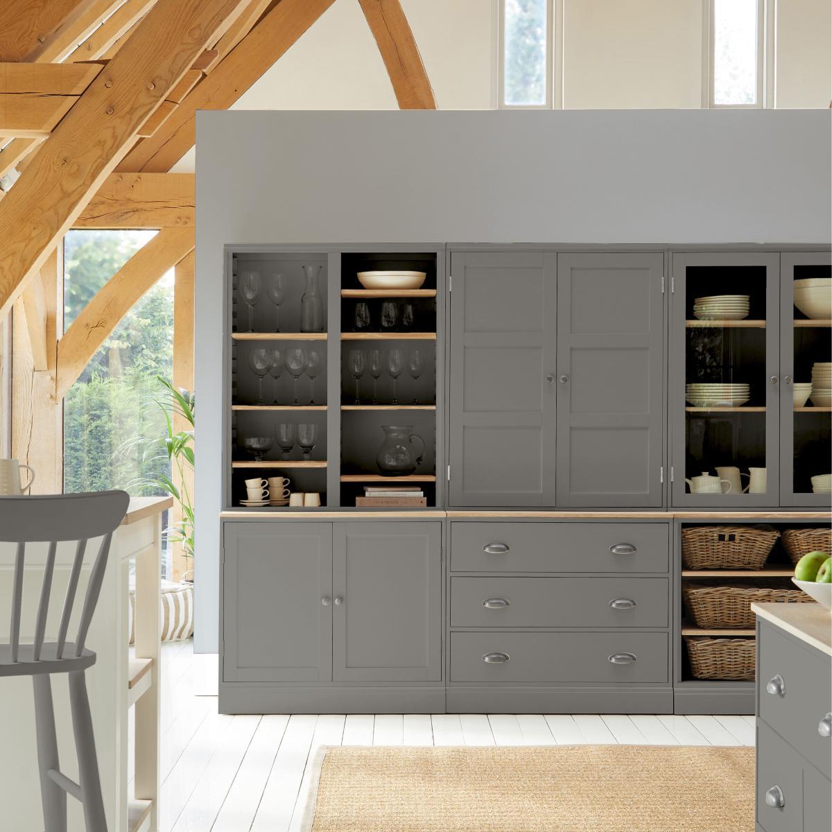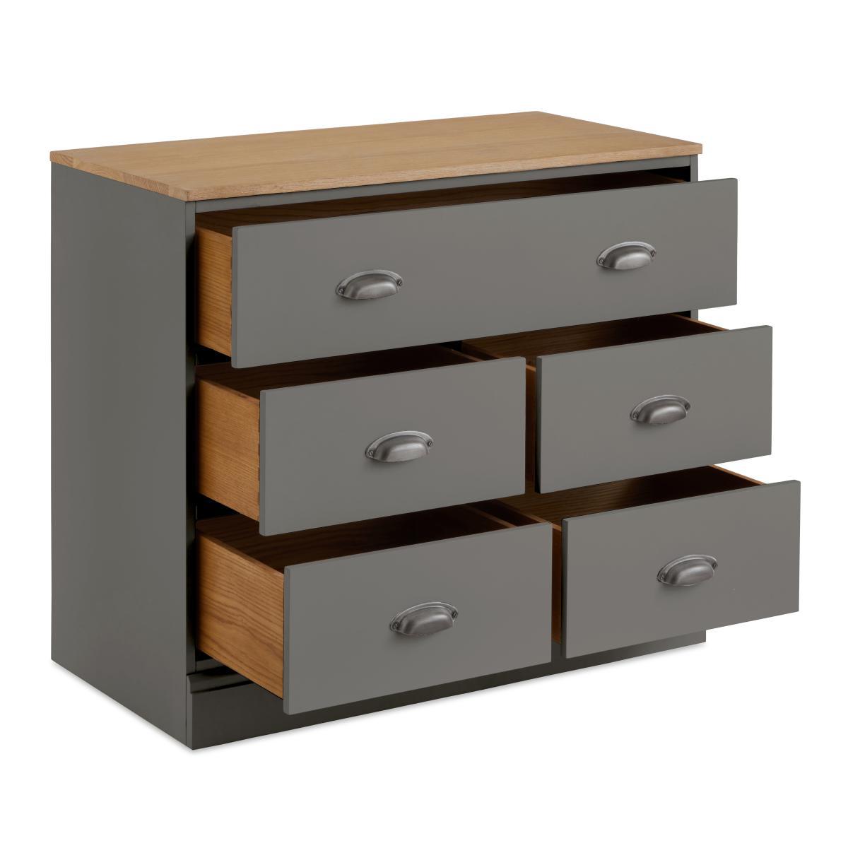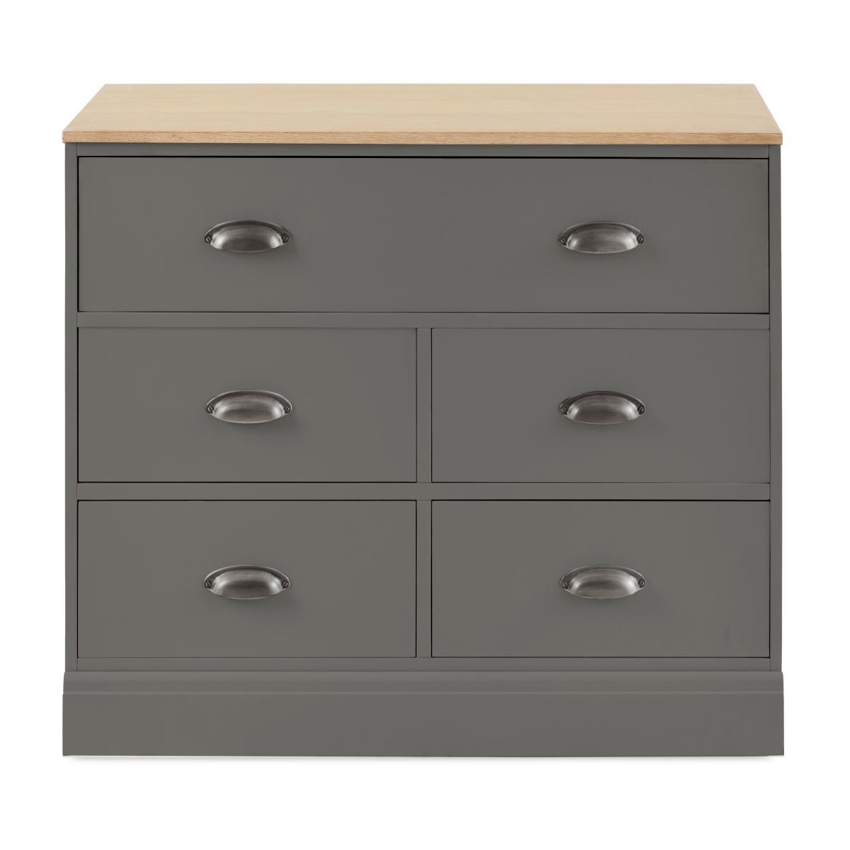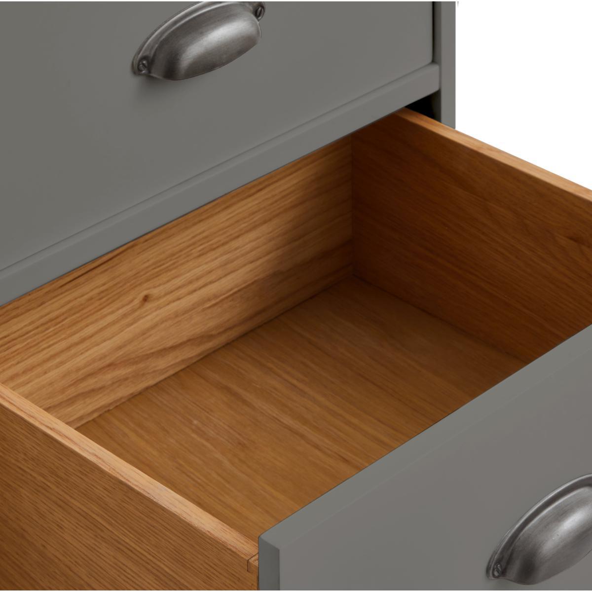 This gorgeous Churchgate 5 Drawer Base Unit provides stunning counter and storage space in any kitchen or living room. Designed with a classic farmhouse-style look, this unit comes with 5 spacious drawers that are perfect for organising and helping to keep your home looking tidy. Finished with stylish brushed cup handles and a sleek coat of paint available in a steeple grey colourway colourway, this unit can be used on its own or can be mix and matched with other units within the Churchgate range, perfect for creating a customised counter or storage space in your home. Please note that this listing is for one base unit only.