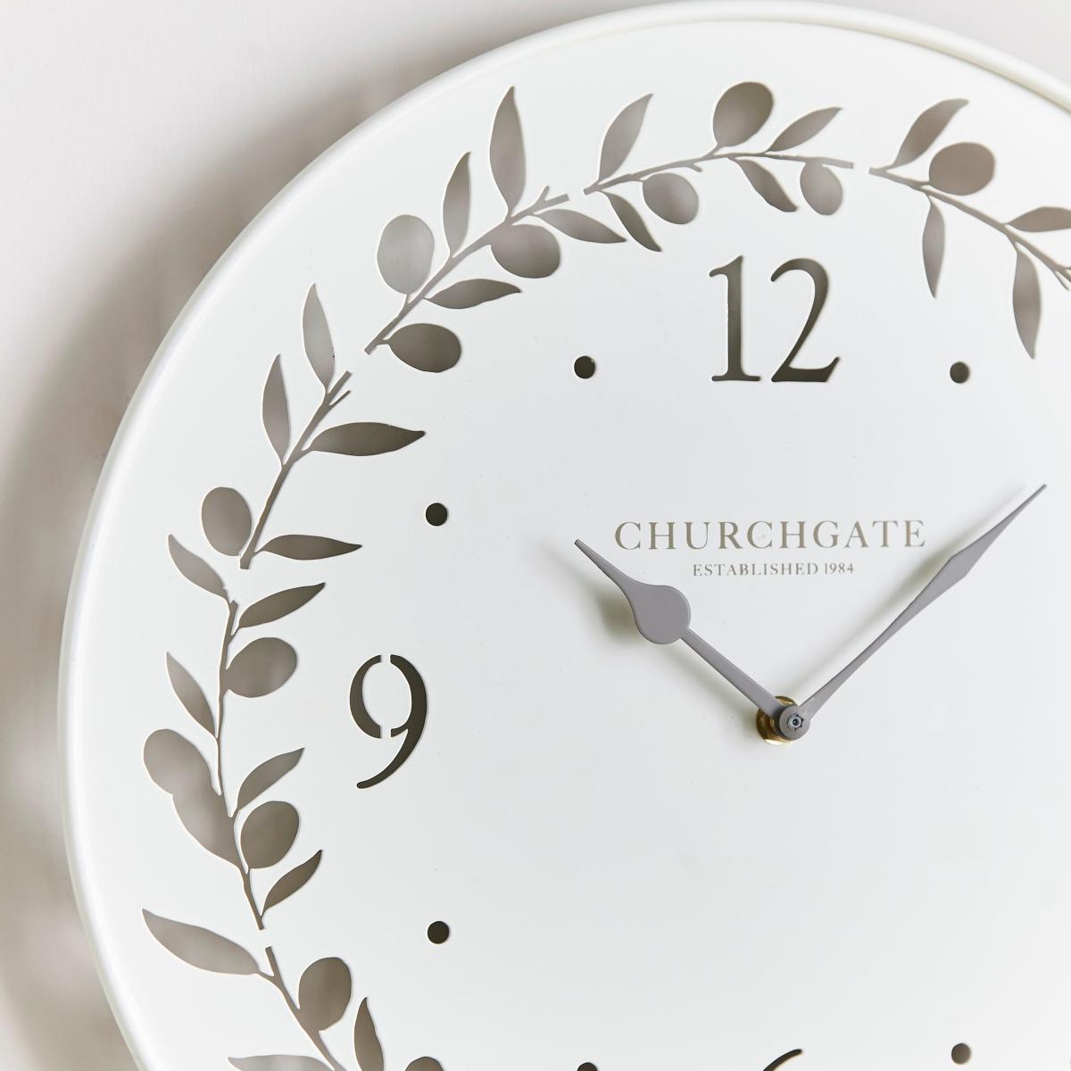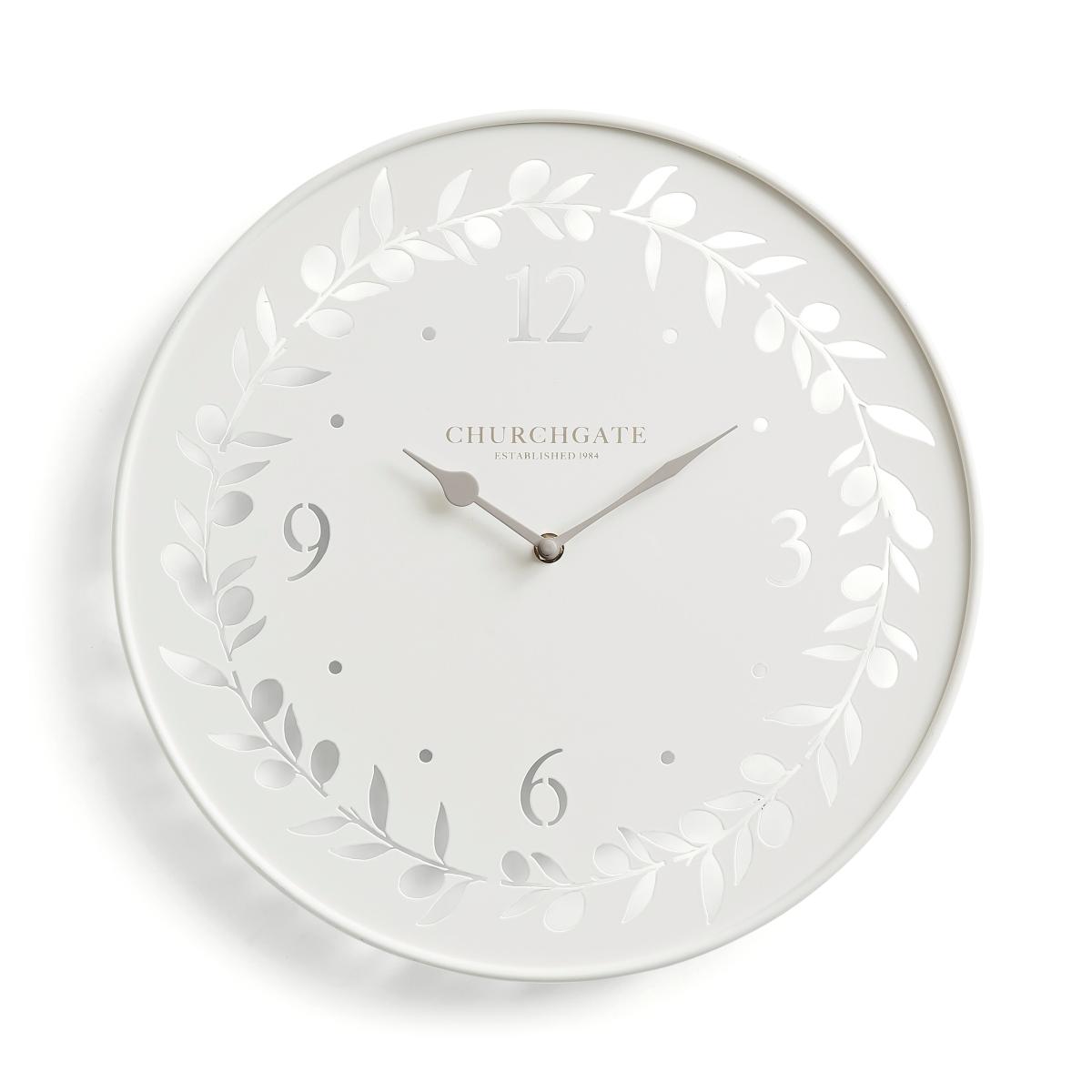 * Botanical Cut-Out Design* Suitable for Outdoor Use* Requires 1 x AA Battery (Not Included)Embrace elegance with the beautiful Churchgate Arthingworth Indoor Outdoor Wall Clock. Featuring a charming botanical cut-out design, this durable piece is brought to you by Churchgate and is suitable for outdoor placement. With an analogue display and a metal composition, all that's required to get your clock ticking is 1 x AA battery!