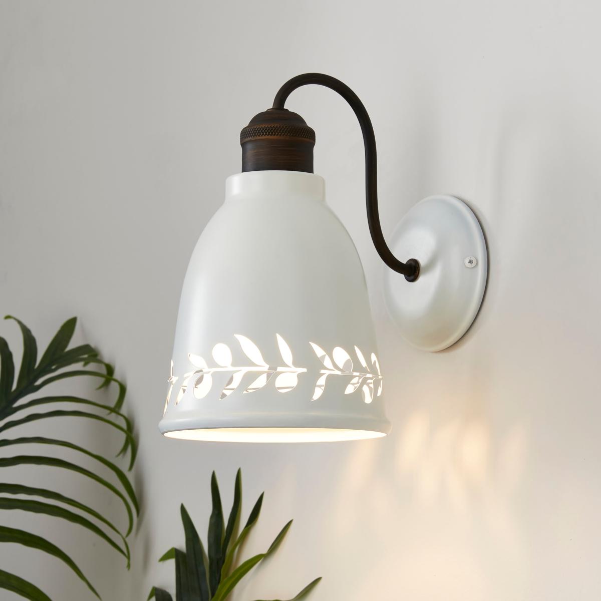 * Industrial-Inspired* Olive Cut-Out Design* Crafted from Metal Adorned with a gorgeous cut-out olive leaf design, this wall light combines a curved arm and domed shade for an industrial yet luxurious look. Ideal for adding a stylish touch to your décor, whilst providing effective lighting.