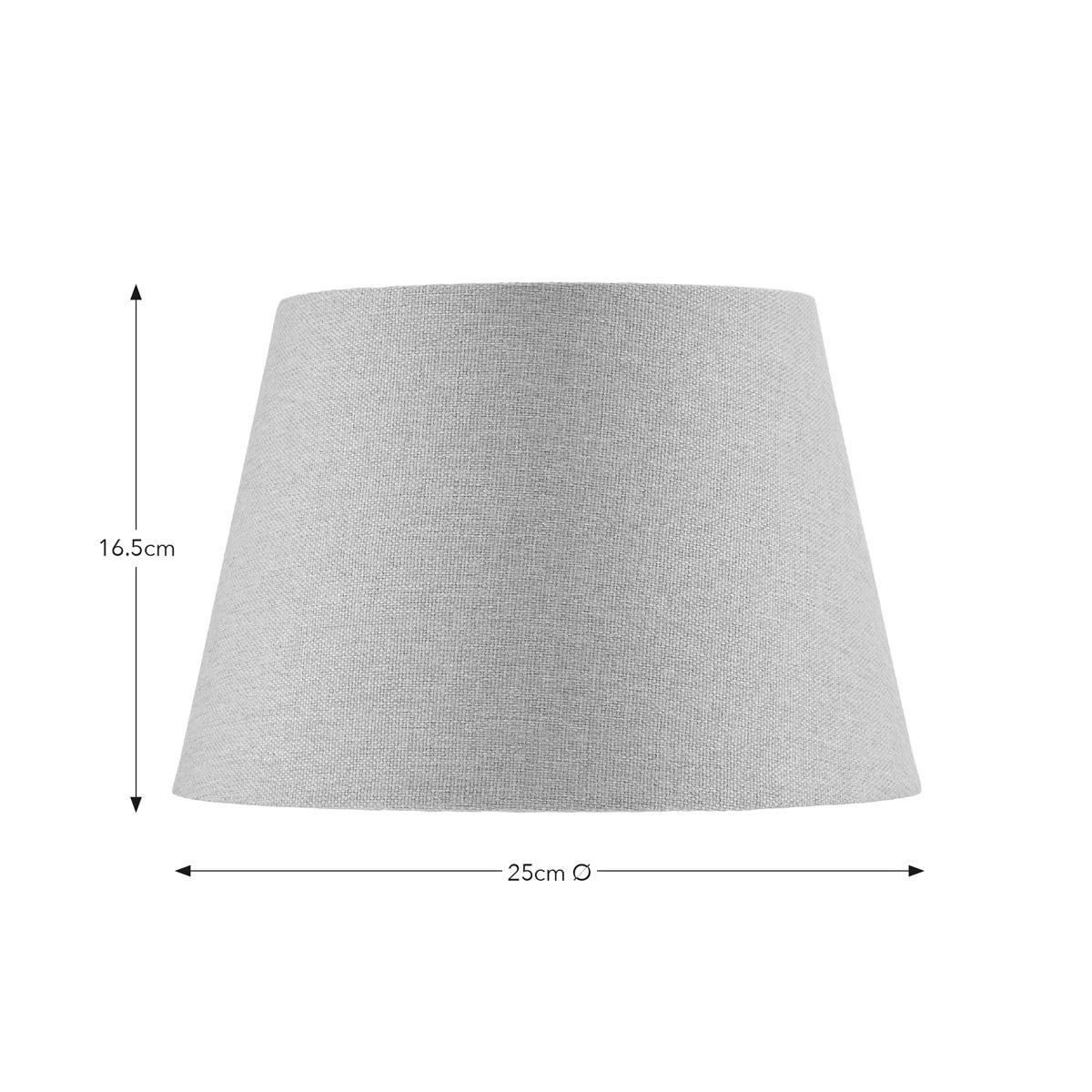 * Simple, Stylish Design* Tapered Look* Available in Multiple Colours & Sizes This linen-effect lampshade features a self-coloured fabric liner and brass frame in a tapered cylindrical shape. Available in various colors and two sizes, it’s a chic addition to any room.