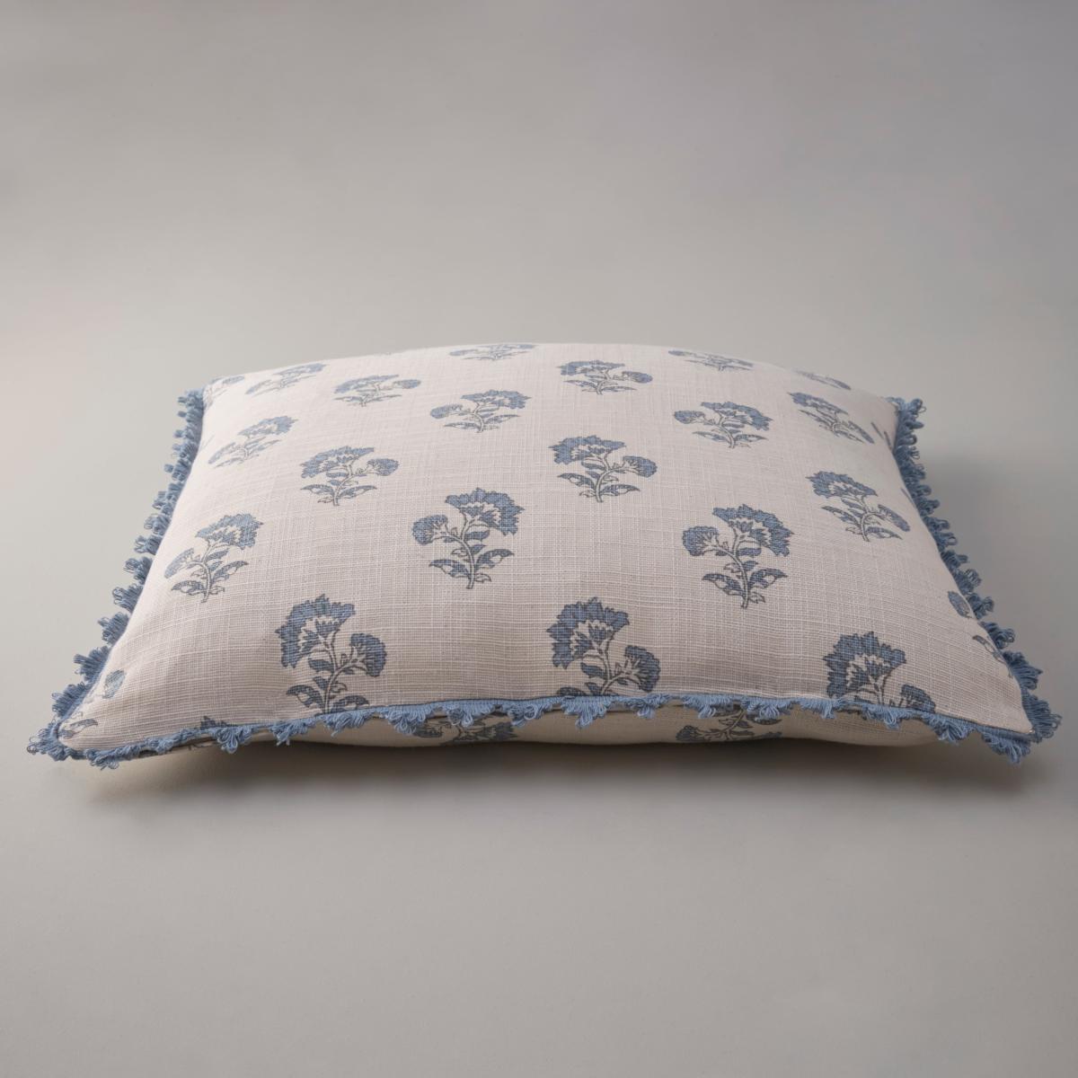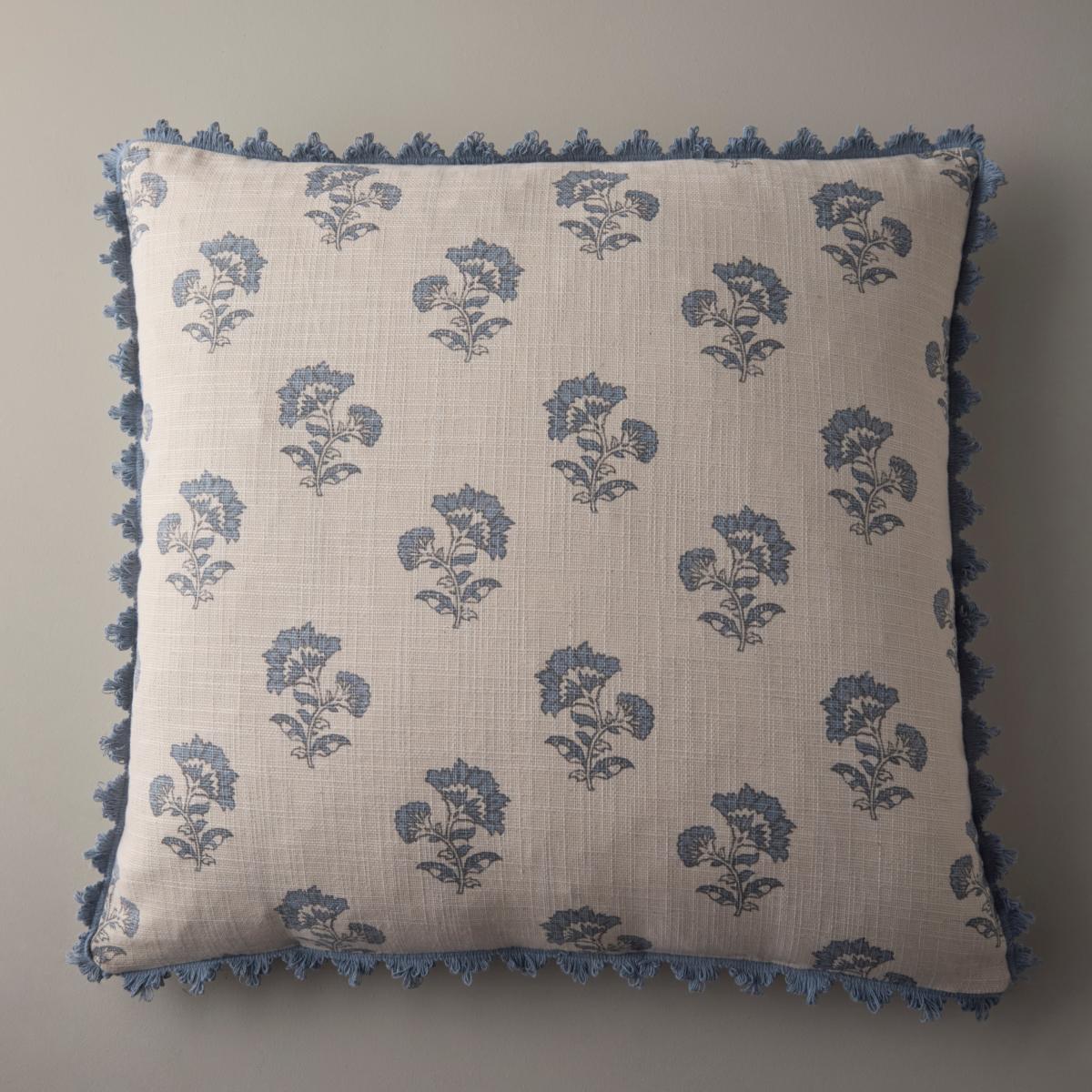 I love this cushion cover for its classic yet understated charm, making it versatile for a range of interiors. The cotton fabric offers durability and a soft feel, while the subtle floral pattern adds texture without overwhelming the space. It works particularly well in traditional or shabby-chic settings, but can also effortlessly complement modern or minimalist schemes when paired with more statement pieces. For styling tips, consider layering it with other cushions in varying textures or colours to create visual interest, or use it as a standalone accent on a neutral sofa to add a touch of refined elegance. The tassel edging also offers a slight boho vibe, making it adaptable for informal eclectic looks too.