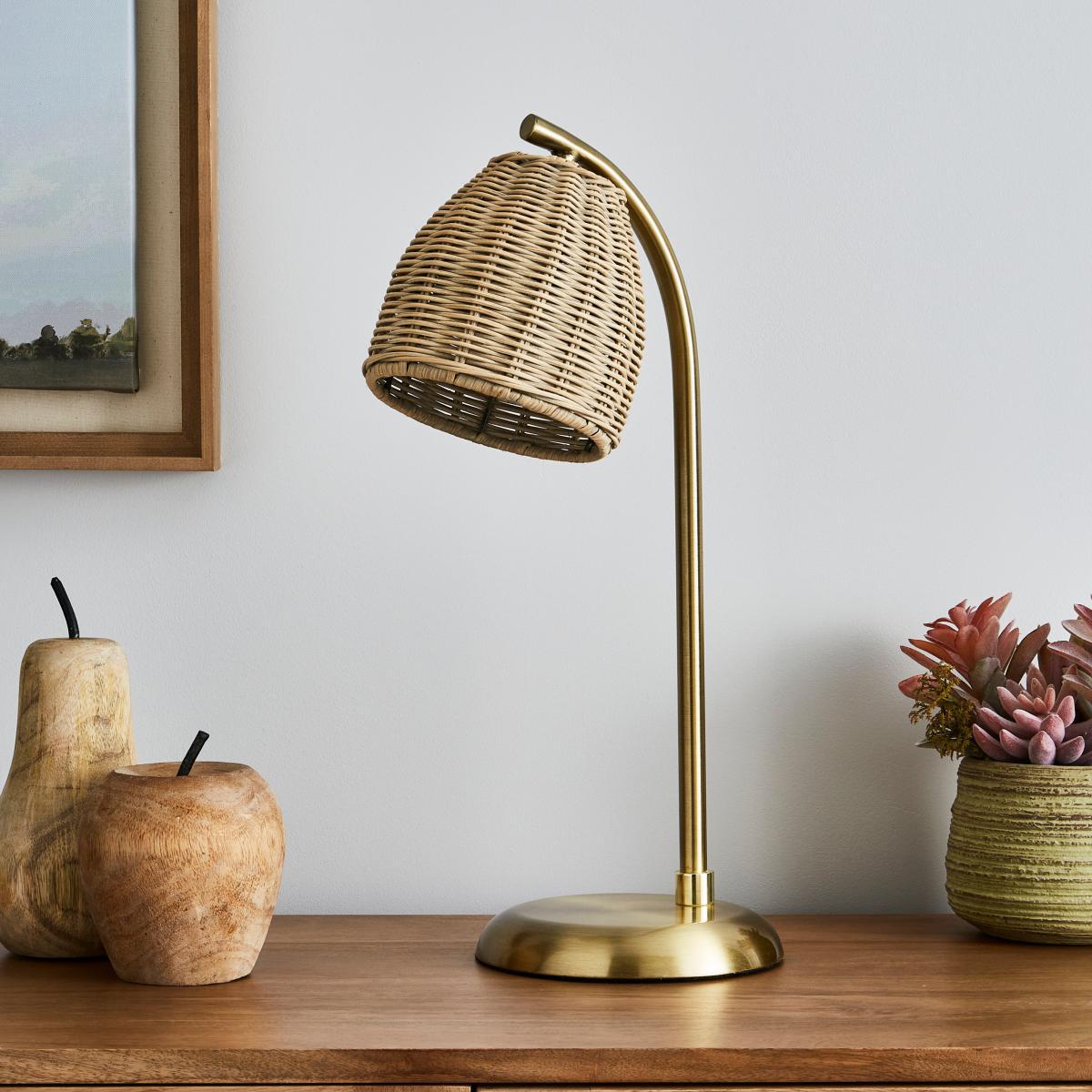Bring a touch of natural style to your home with this beautiful Churchgate Cotes Rattan Table Lamp. This timeless design lamp features a modern brass metal finished stem and base, paired with a stunning natural woven rattan shade. Matching items are also available, making it easy to create a coordinated look in your home.