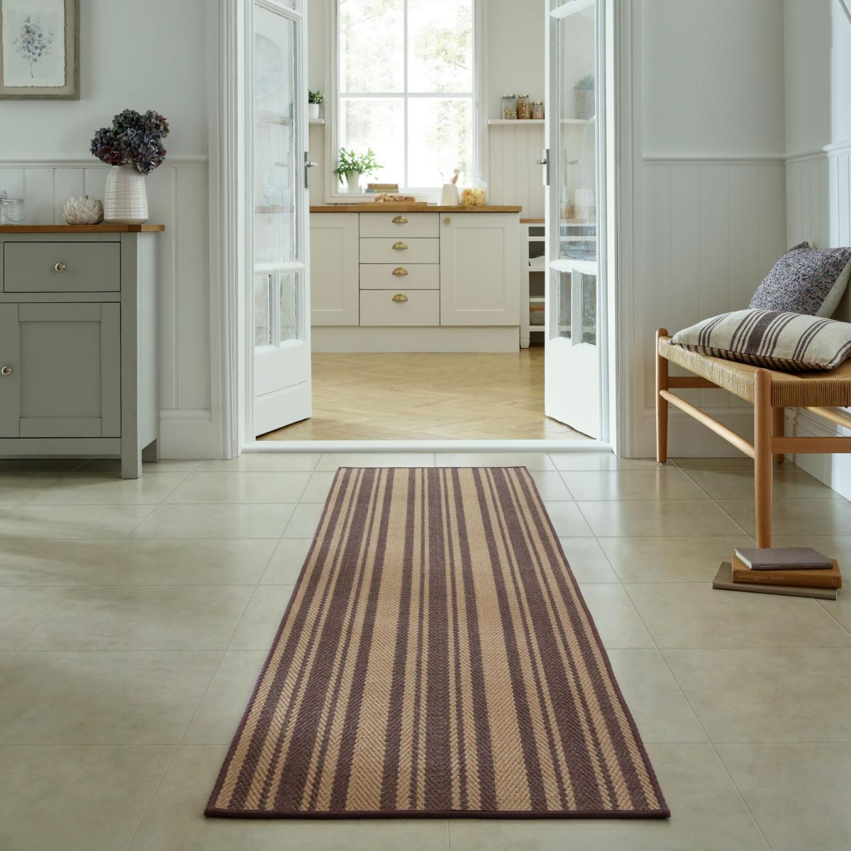 I love this runner for its versatile, classic design with purple stripes that can add a subtle pop of colour to a variety of interiors. It works particularly well in hallways, kitchens, or alongside dining tables where a practical yet stylish addition is needed. The jute texture offers durability and a natural look, ideal for high-traffic areas. For styling, consider pairing it with neutral or muted furnishings to let the purple stripes stand out, and layer with simple accessories like woven baskets or greenery for an understated, cohesive look. It’s a practical choice that combines durability with style, making it a smart addition to both contemporary and traditional homes.