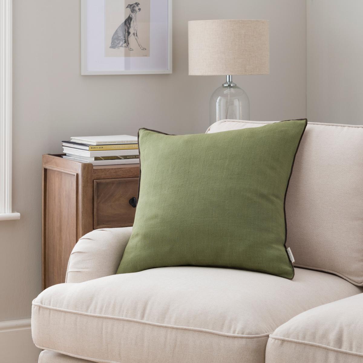 * Made from 100% Linen* Large square cushion* Plump feather inner for lasting comfort* Removeable cover* Machine washable cover* Available in a variety of colours Crafted from 100% linen, this luxurious cushion is soft to the touch and features stylish contrast edge detailing. Pure linen is naturally strong, versatile and biodegradable and creates a unique textured finish when woven for a relaxed look. The soft, plush feather inner can be removed to leave the cover fully machine washable for your convenience. Style with the other beautiful colours available separately in the Churchgate Evington collection to complete the look.
