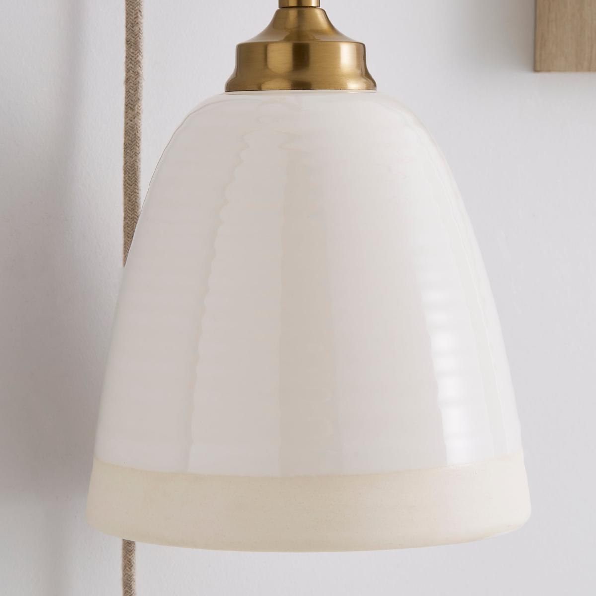 * Bulb required: 1 x 7W Candle LED - E14 White* Bulb not included* Height/Drop: 42cm / Width: 15cm / Depth: 18cm* Switch type:In Line Introducing the Churchgate Harby Ceramic Easy Fit Plug In Wall Light, designed with a stunning White ceramic glazed head, finished in an antique gold metal and complete with a white twisted cable. Perfect for adding a modern touch to your home. Matching family items to help coordinate your décor.