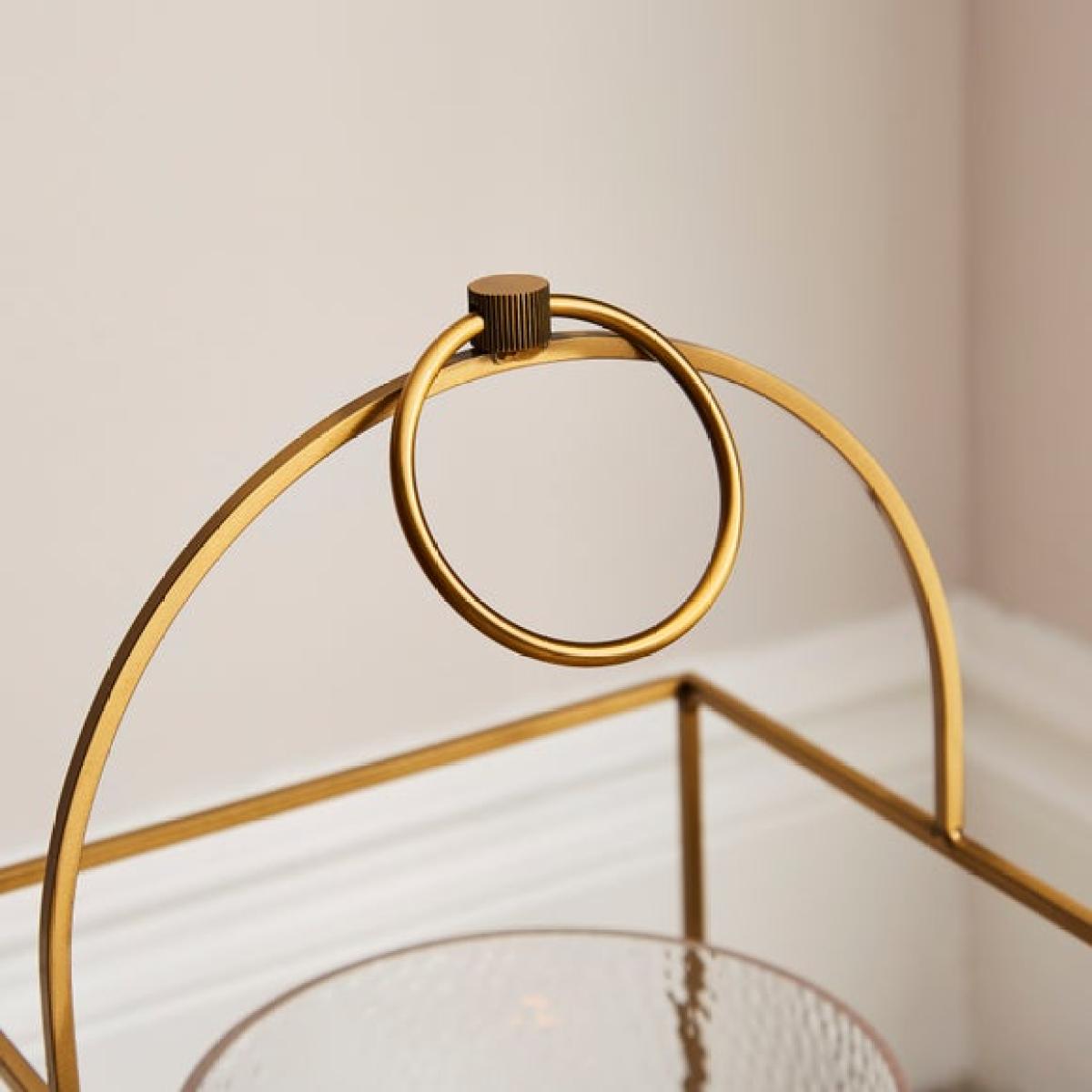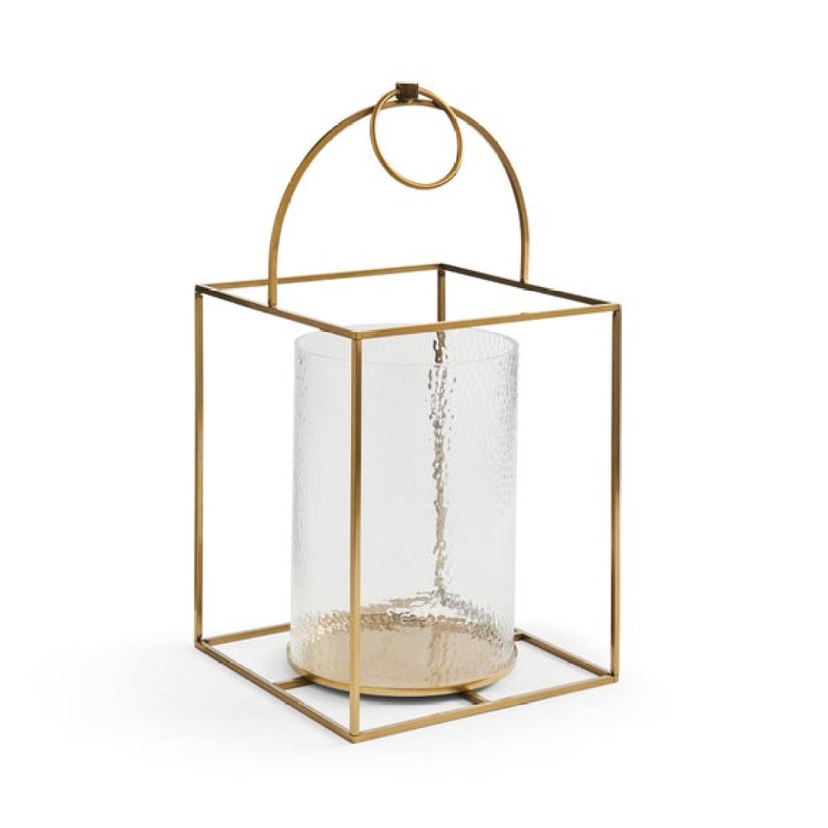 * Sleek metal frame with gold finish * Holds a pillar candle (not included) * Built in handle * Available in multiple sizes Bring a warm glow to your space with the Churchgate Metal Lantern. Its gold finish give it a modern edge, while the open frame design lets candlelight shine through beautifully. Whether placed on a console table or used as a centrepiece, it adds a soft touch of light wherever it goes. Designed to hold a pillar candle, it’s perfect for creating a cosy atmosphere indoors. A simple way to add a bit of shine to your home.