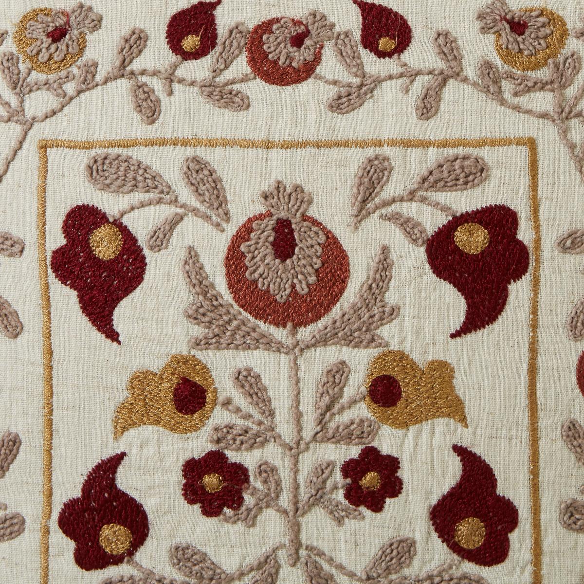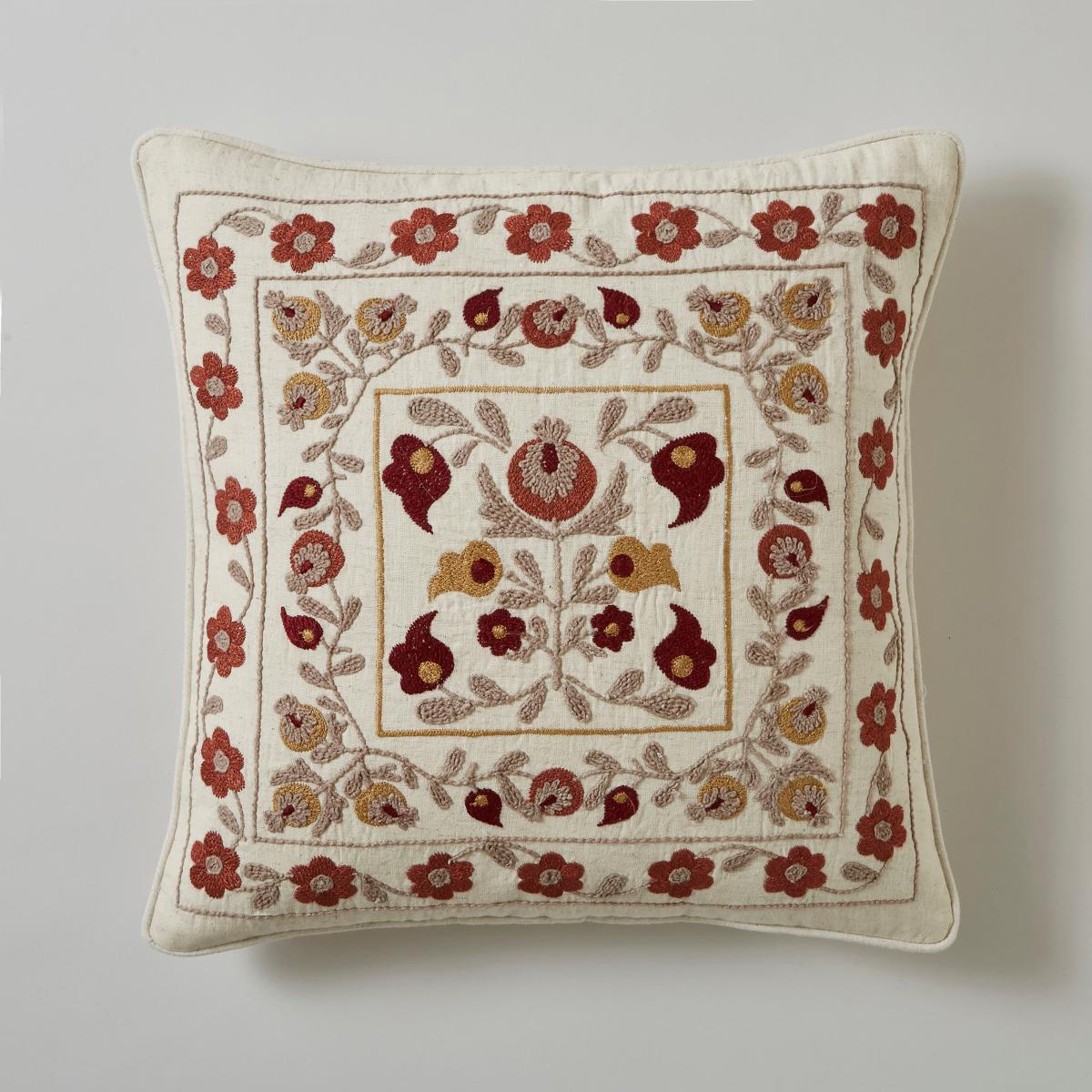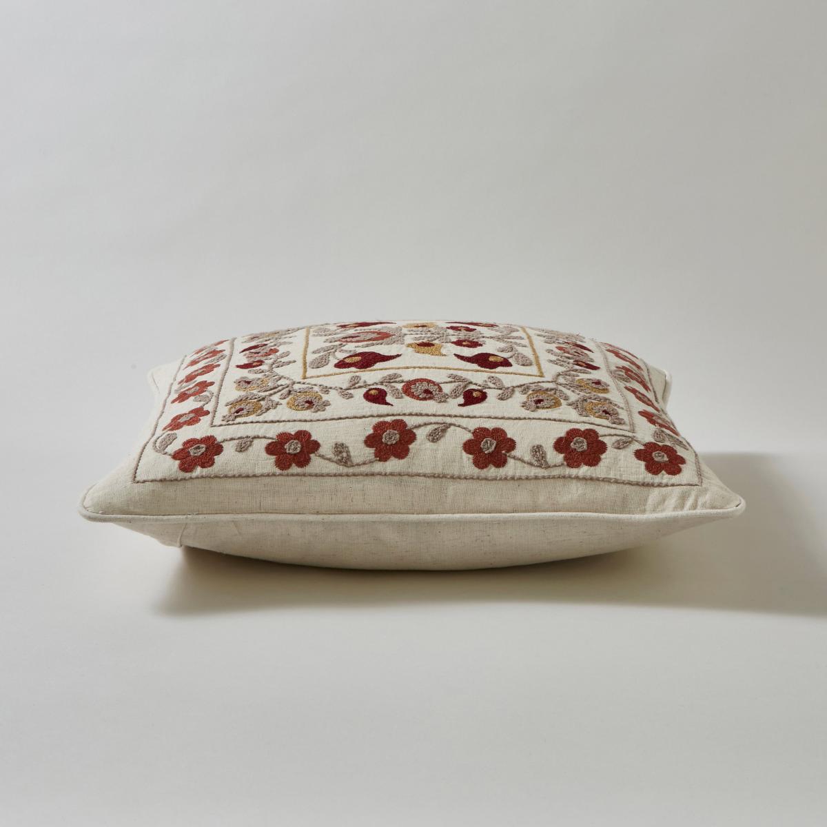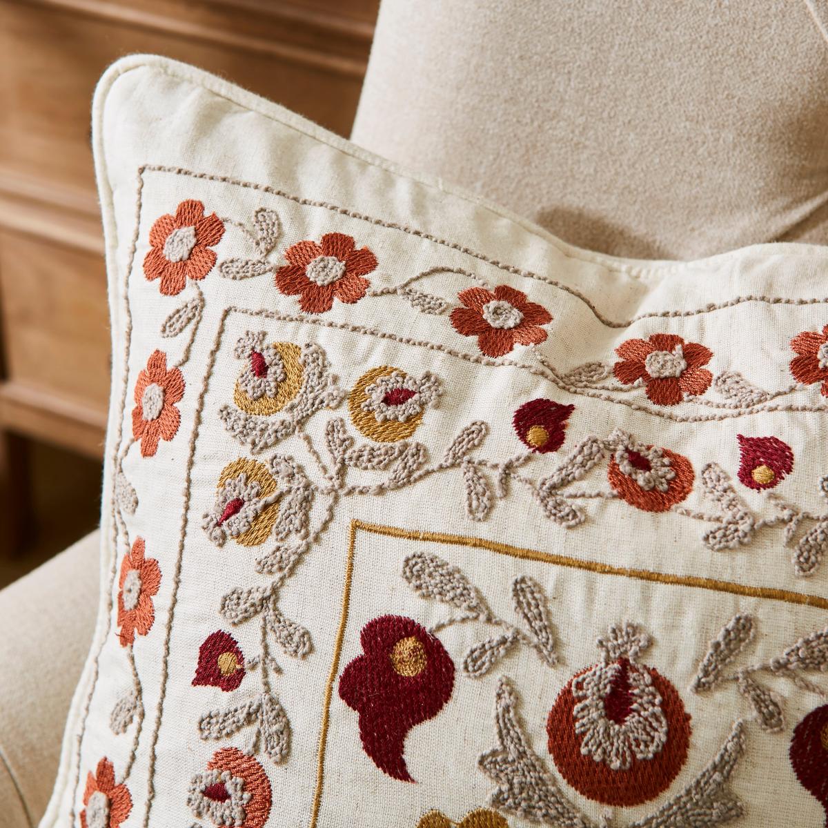 * Elegant embroidered floral design* Feather filling* Dry Clean Only* Piped edge detailing Sporting an intricately embroidered design, the Churchgate Morcott Cushion adds a touch of class to any home. Crafted from a rich cotton and linen blend fabric, this cushion sports a demask floral design, making it a perfect option for timeless styling. Complete with a plump feather filling and piped trim detailing, this beautiful piece is a member of the esteemed Churchgate Collection, offering luxury and optimum comfort.