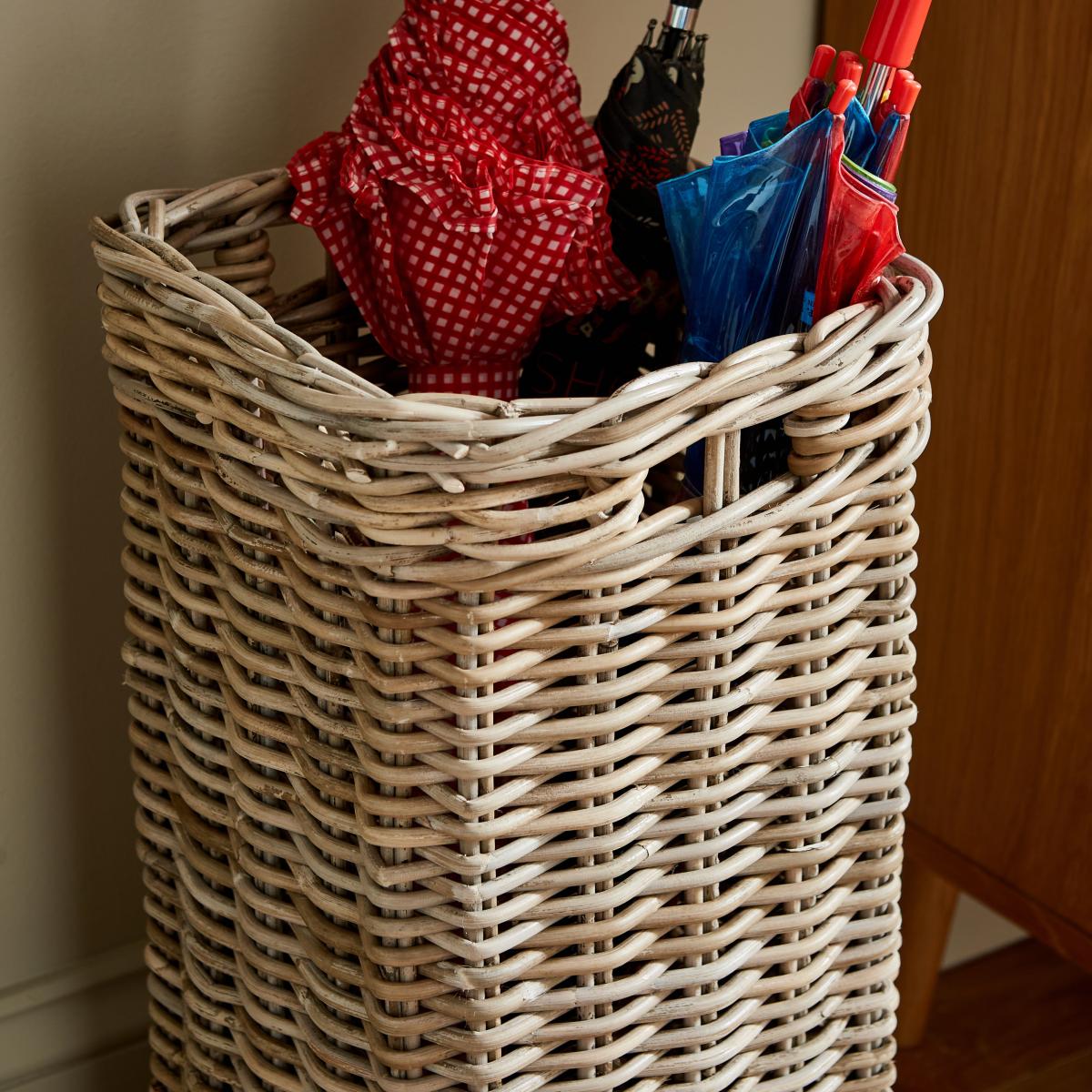 * Crafted from natural material* 100% Handmade* Versatile storage* Rustic feel* Keep away from fire Embrace the stylish utility of the Churchgate rattan umbrella stand. Hand-made to perfection from natural materials, this stand is not just functional but also a statement piece for your entryway. Wipe it clean effortlessly with a soft cloth, and guess what? It's fully assembled, ready to welcome your umbrellas in style.