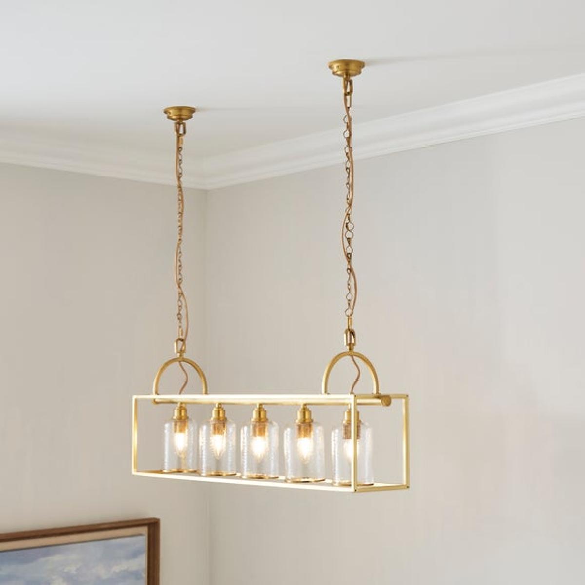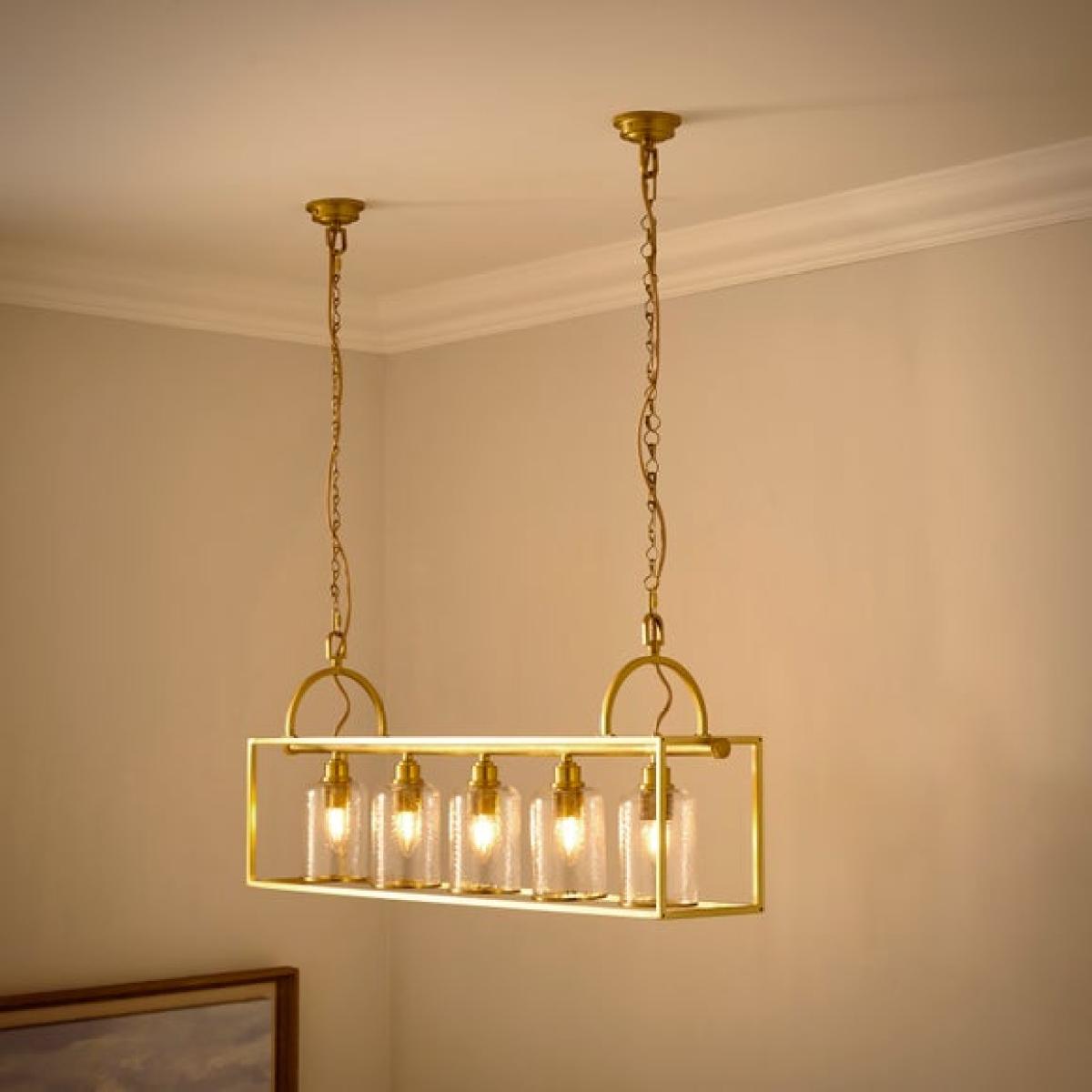 * Brought to you by Churchgate * Adjustable Height - Tailored Ambience * Elegant, Eye-Catching Look & Design * Ideal for Dining Rooms/Spaces Designed to impress, this ceiling light features five mottled glass domes framed in brass tones for a warm, ambient glow. Perfectly proportioned for dining spaces, it offers generous light output with refined details like fabric flex and delicately styled lamp holders.