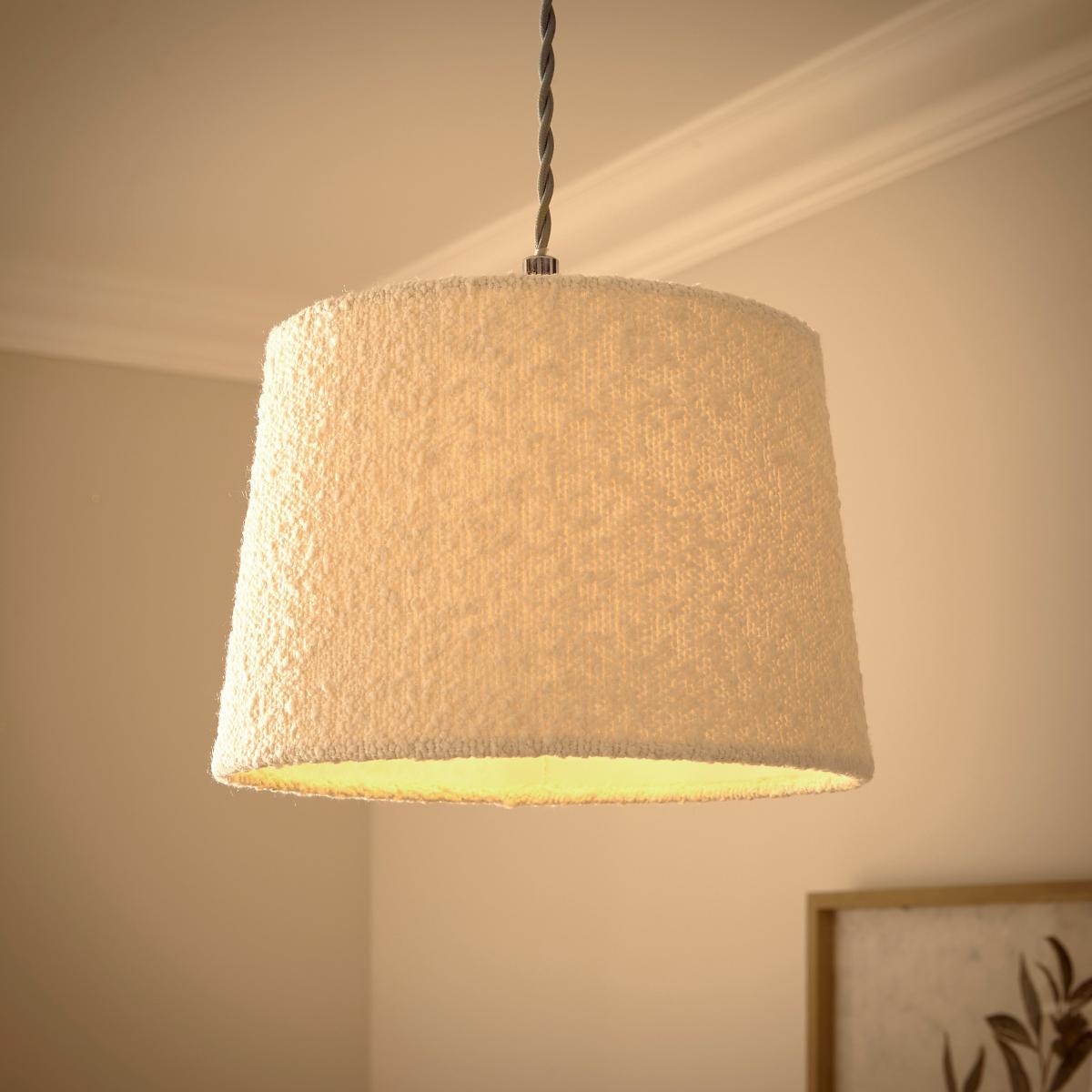* Brought to you by Churchgate* Attractive Tapered Shape* Simple, Stylish Design* Requires: Candle Bulb With its boucle fabric and tapered shape, the Churchgate Lamp Shade is perfect for adding a modern yet cosy look to any room.