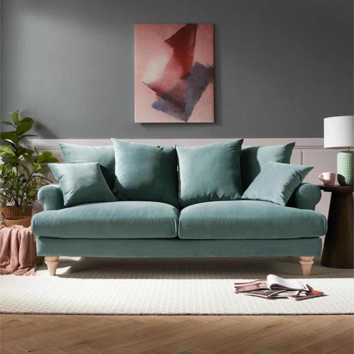 Introducing our Dawn sofa range. Dawn is stunning and elegant. It has deep seats and beautifully curved armrests with feather scatter back cushions, making Churchill extremely comfy. Dawn is available in a cosy 2 seater and a larger three seater options, with a beautiful colour palette of dark green, teal or a burnt orange luxury velvet fabrics or our classic ivory linen fabric. The velvet which is used to make this sofa is an absolutely stunning upholstery fabric feeling like you get a warm hug from your sofa whenever you sit down. It has luxurious and sophisticated feel adding a touch of elegance to your living space.