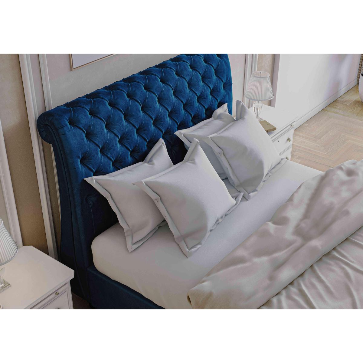 Sleep in sumptuous style with the Churchill upholstered bed frame. Handcrafted in Britain, this stylish bed frame features some very traditional details – luxurious buttoning, hand pleating, wonderfully tailored upholstery – as well as optional ottoman storage. Head ends are beautifully curved, sleigh style, and you can choose either a high foot end that matches the head end, or no foot end at all for a more contemporary look. It’s available in a huge choice of stunning upholstery options including traditional velvets, modern crushed velvets and high quality woven fabrics. A beautiful – and useful – ottoman storage box completes the collection.. Luxurious handcrafted bed frame with optional storage. Hand pleated and with deep buttoning. Huge choice of over 50 upholstery fabricsImagine yourself drifting off to restful sleep on the most luxurious bed imaginable. It’s a dream come true with the handcrafted Churchill high foot end ottoman bed frame. This stunning, traditional-style bedframe features extravagantly scrolled head and foot ends, hand pleated and with sumptuously deep buttoning. Yet not everything about this bedframe is traditional. Under the bed base you’ll find a very modern answer to every bedroom’s lack of storage – a large ottoman compartment that’s perfect for spare pillows, duvets and much more. Available in double, king and super king sizes, this bed frame can accommodate any standard mattress on its supportive wooden slats. Choose from a wide range of fabulous upholstery fabrics including velvets and crushed velvet. Made in Britain, the Churchill high foot end ottoman bed frame is part of the Churchill collection which includes both regular and storage bed frames as well as a buttoned ottoman box. Mattress sold separately. Headboard and footboard each come as one single piece. Top Tip:To keep your fabric bedframe looking good, use a soft brush or vacuum with the curtain attachment weekly. Ideally clean professionally annually. Some fabrics can show wear on areas of more use or in direct sunlight..