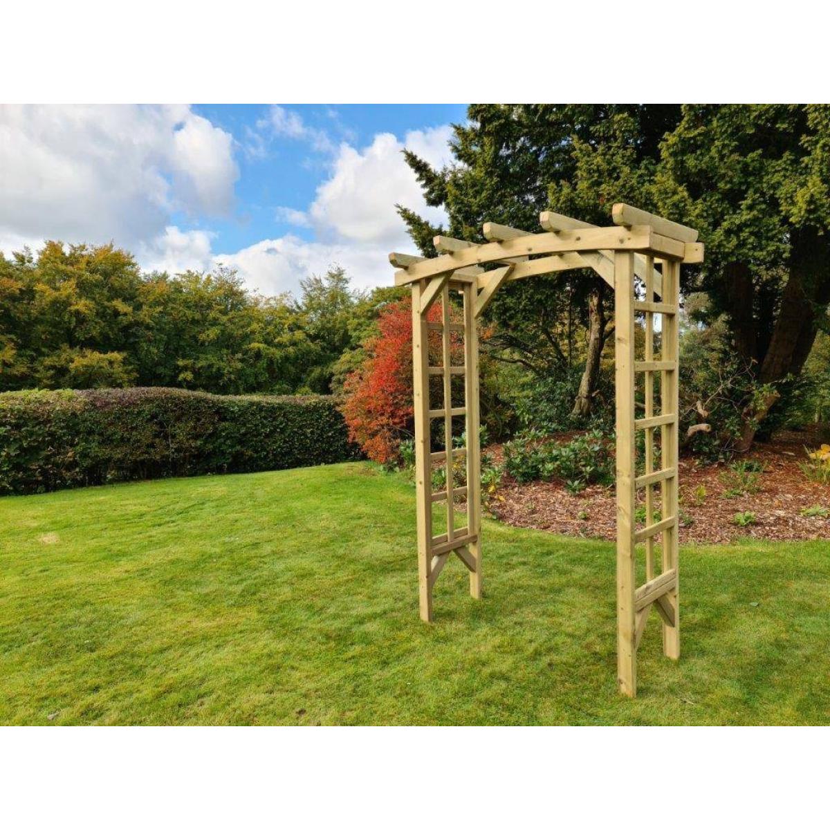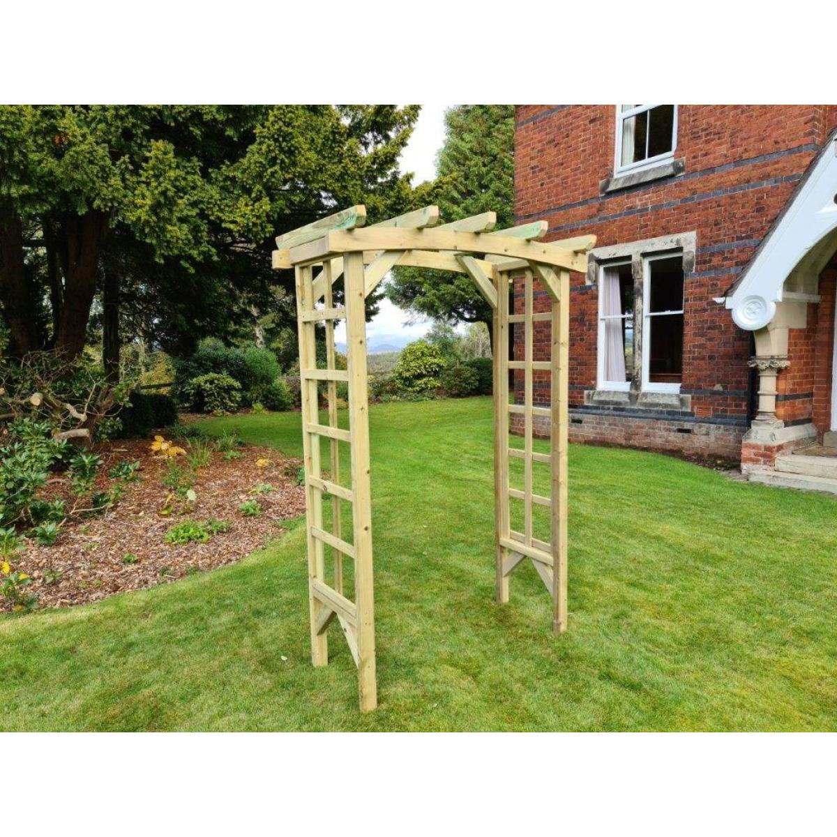 Our garden arches are an easy way to transform the feel of your outdoor pathways. When paired up with a couple of planters and some climbing plants, they are sure to turn that bland walkway into a beautiful new feature in your outdoor space. Built from FSC approved, premium quality pressure treated timber. Which prevents rot for up to 20 years. Features: Tanalised Handmade in UK Thick timber Fully braced Dimensions: W120cm x H210cm x D50cm Weight: 50kg