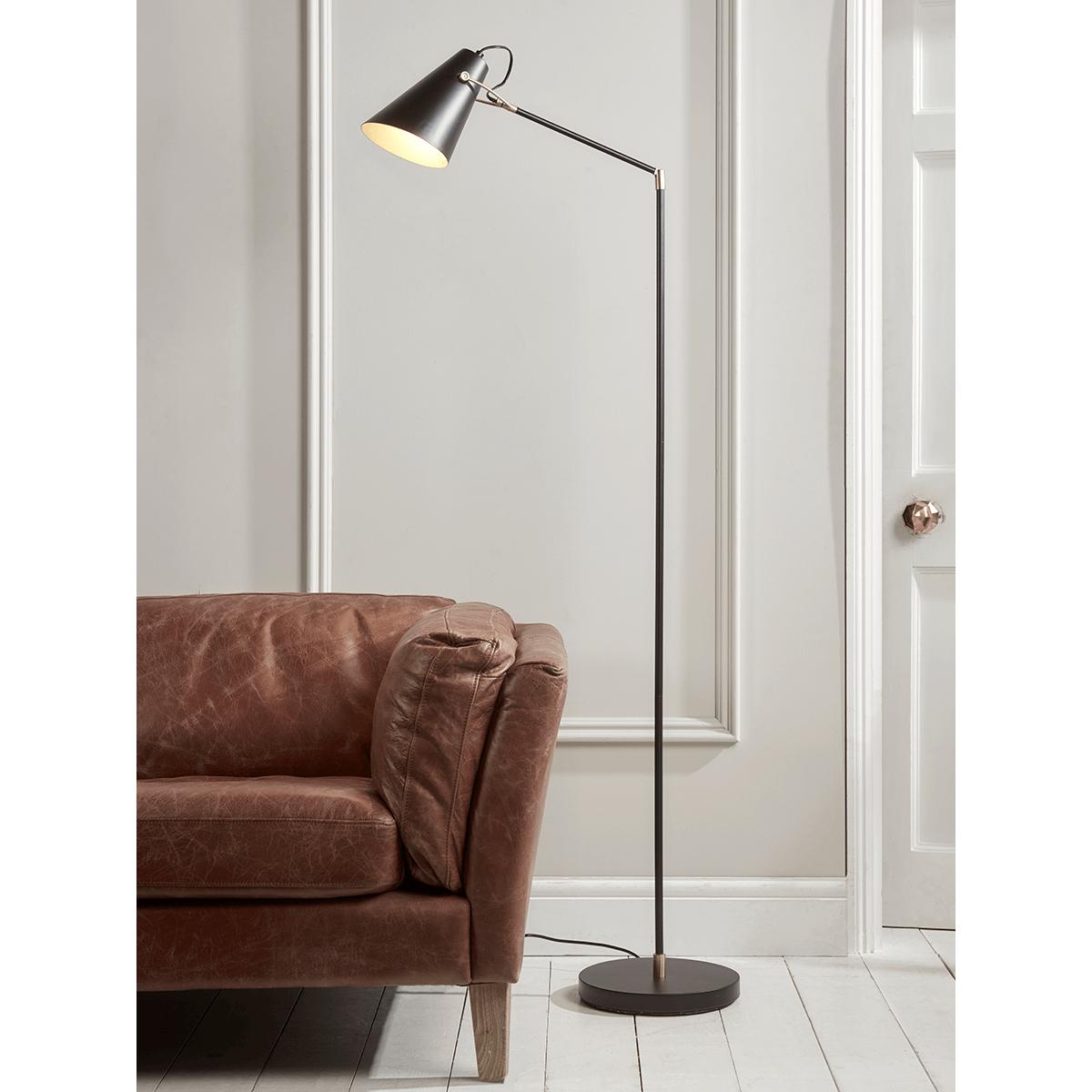 With a vertical, matt black shade and round base, our elegant floor lamp makes the perfect reading light and can be angled to shine wherever you choose.