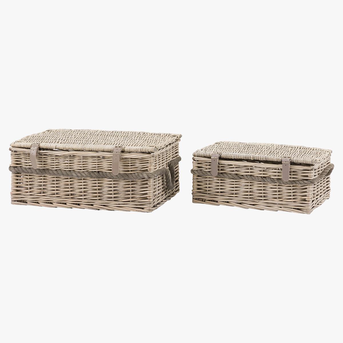 I love these baskets for their versatile, understated look and practical storage potential. The natural tone adds warmth and works well in both modern and traditional interiors, from coastal schemes to rustic, country-inspired spaces. They're ideal for organising everything from linens and craft supplies to bathroom essentials or kitchen bits, keeping surfaces decluttered without sacrificing style. A handy styling tip is to use the smaller basket for everyday bits like keys or sunglasses near your entrance, while the larger one can be nestled on shelves or under cupboards for neat storage. Their lid design not only keeps contents hidden but also adds a tidy, finished appearance, making them both functional and attractive accents in many rooms.