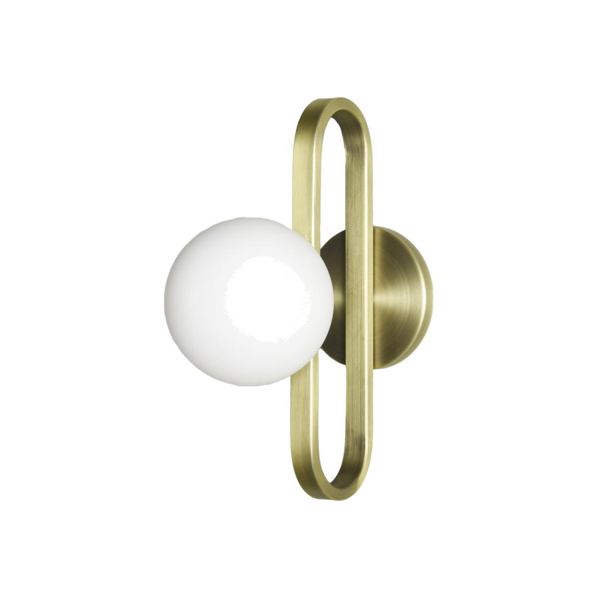 Cime is a collection of gravity-defying lights! Simple and refined forms which play with geometry and materials. The Cime wall light is made up of a steel oval structure and a blown-glass sphere. The sphere is an opal white and gives off a gentle mood. An airy composition with a lightness that will fit into a lounge, a bedroom, an office, an entrance, etc. Simple and sophisticated, it will decorate your interior with a great deal of finesse. This version can be used outdoors and in a bathroom.