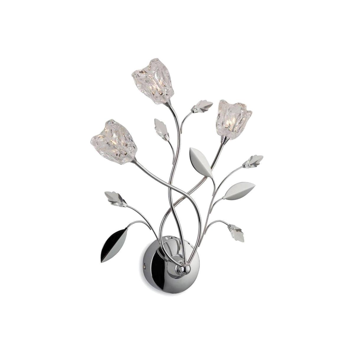 Like a beautiful garden for your decor, the Cindy 3-Light Chrome and Clear Glass Indoor Wall Light Fixture offers a soft glow for your lighting scheme. The leaves and flowers are beautifully crafted for a delicate look while emitting brilliant light for ambience and interest.