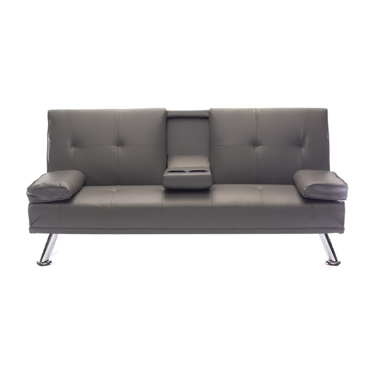 Cinema Faux Leather Sofa Bed with Cup Holders - Grey