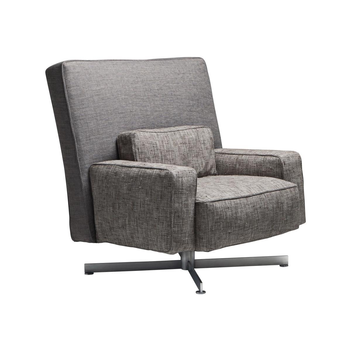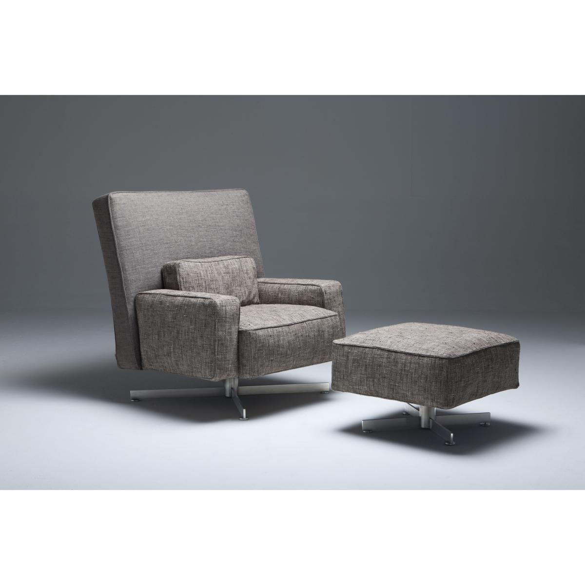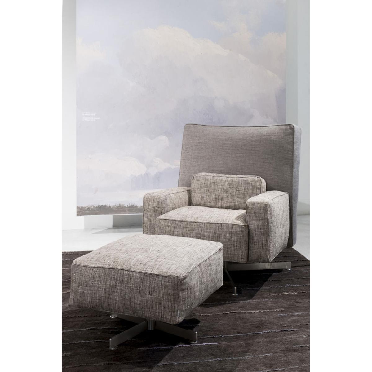 "If all presidents and kings in the world had an exceptionally comfortable armchair like Cinemascope, can you imagine how their ideas, conversations and decisions would change? Cinemascope is the armchair that can save the world. "" Philippe Starck. Cinemascope has a wide comfortable seat. Standing on a stainless steel swivel base, it has an swinging mechanism. Removable fabric or leather cover. The back and seat can be upholstered with different fabrics, allowing wide room for customisation. Cinemascope comes with a square foot stool ottoman designed to complement the armchair but perfect to be used alone. ".