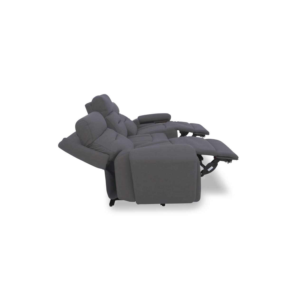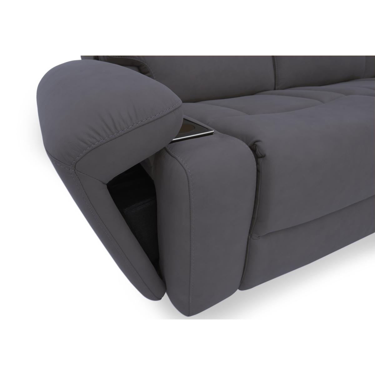 Enjoy 4. D cinema-style entertainment and the ultimate in relaxation with our innovative Cinemax range. Connect to your TV or phone via Bluetooth for a truly immersive audio-visual experience. Enjoy powerful 5.1 surround sound provided by speakers cleverly embedded into back and arm cushioning. Find your perfect comfort position with power recliners and power headrests. And soothe aching joints with built-in massage units. The discreet, multi-function touch-button control panels also offer wireless charging, USB charging and cup holders. And with very generous curves, luxurious cushioning and beautifully tailored upholstery in 100% leather and fabric, the Cinemax collection is every bit as stylish as it is relaxing. Handmade and only at Furniture Village. Masterful ergonomic design, cinema-style entertainment and amazing comfort – this three-seater power reclining Cinemax sofa has it all. Why you'll love it The sofa of the future is here. Connects to your TV for a truly immersive 4. D cinematic experience. Enjoy surround sound with speakers embedded into cushioning. Intelligent design – the media control panels are handily located in the sofa’s arms. Each panel has Bluetooth and sound controls plus wireless charging and a cup holder. With massage function, power recliners and power headrests for the ultimate in relaxation. Generous body-hugging curves and luxurious pocket spring cushioning. Beautiful 100% leather upholstery in a choice of colours. Top-quality construction – wooden frame and sprung seats and backs. Exclusive to Furniture Village. This 3-seater fabric power recliner sofa with media arms is part of our Cinemax sofa range. What you need to know Medium comfort level. Seat suspension: zig-zag spring. Seat cushioning: pocket spring and high-resilience foam. Seat cushions are fixed. Back suspension: zig-zag spring. Back cushioning: fibre. Back cushions are fixed. Arm cushioning: foam. Feet are removable. Please allow time for the recliner mechanism to ease. Minor gaps are necessary to ensure ease of motion and may be exaggerated depending on floor type. Some fabrics can show wear on areas of more use or in direct sunlight. Clean regularly using a soft brush or vacuum with the curtain attachment. Deal with any spills promptly. Professional cleaning advised for oil- and grease-based stains. Fixed seat and back cushions require smoothing and straightening regularly. To smooth and straighten fixed cushions, punch the back cushion’s top two corners and the seat cushion’s outer two corners, and pinch outwards. Please read our upholstery care guide for more advice.