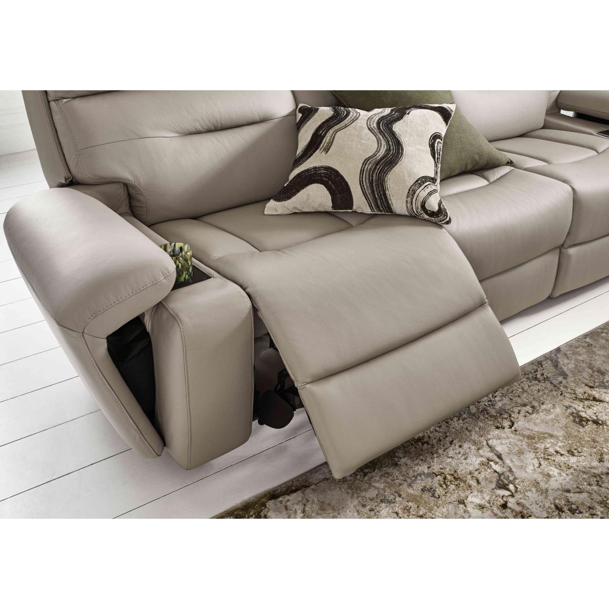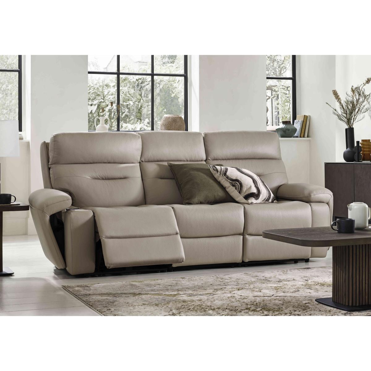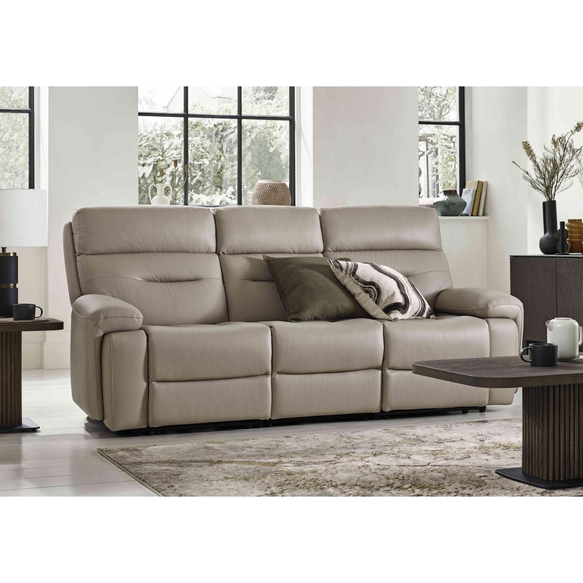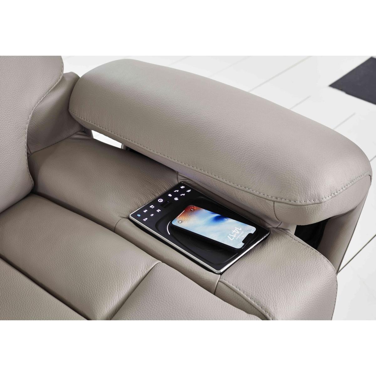 Enjoy 4. D cinema-style entertainment and the ultimate in relaxation with our innovative Cinemax range. Connect to your TV or phone via Bluetooth for a truly immersive audio-visual experience. Enjoy powerful 5.1 surround sound provided by speakers cleverly embedded into back and arm cushioning. Find your perfect comfort position with power recliners and power headrests. And soothe aching joints with built-in massage units. The discreet, multi-function touch-button control panels also offer wireless charging, USB charging and cup holders. And with very generous curves, luxurious cushioning and beautifully tailored upholstery in 100% leather and fabric, the Cinemax collection is every bit as stylish as it is relaxing. Handmade and only at Furniture Village. Here’s the ultimate luxury sofa experience. This beautiful three-seater leather power reclining sofa connects to Bluetooth and sound via handy control panels hidden in its arms. Why you'll love it The sofa of the future is here. Connects to your TV for a truly immersive 4. D cinematic experience. Enjoy surround sound with speakers embedded into cushioning. Intelligent design – the media control panels are handily located in the sofa’s arms. Each panel has Bluetooth and sound controls plus wireless charging and a cup holder. With massage function, power recliners and power headrests for the ultimate in relaxation. Generous body-hugging curves and luxurious pocket spring cushioning. Wide range of upholstery choices including our leather-look water-resistant fabric. Top-quality construction – wooden frame and sprung seats and backs. Exclusive to Furniture Village. This 3-seater leather power recliner sofa with media arms is part of our Cinemax sofa range. What you need to know Medium comfort level. Seat suspension: zig-zag spring. Seat cushioning: pocket spring and high-resilience foam. Seat cushions are fixed. Back suspension: zig-zag spring. Back cushioning: fibre. Back cushions are fixed. Arm cushioning: foam. Feet are removable. Please allow time for the recliner mechanism to ease. Minor gaps are necessary to ensure ease of motion and may be exaggerated depending on floor type. Leather has unique marks and characteristics with variance in colour and texture. Leather softens with use. Smoothing the tops of leather cushions prevents signs of visual comfort. Fixed seat and back cushions require smoothing and straightening regularly. To smooth and straighten fixed cushions, punch the back cushion’s top two corners and the seat cushion’s outer two corners, and pinch outwards. Please read our upholstery care guide for more advice.