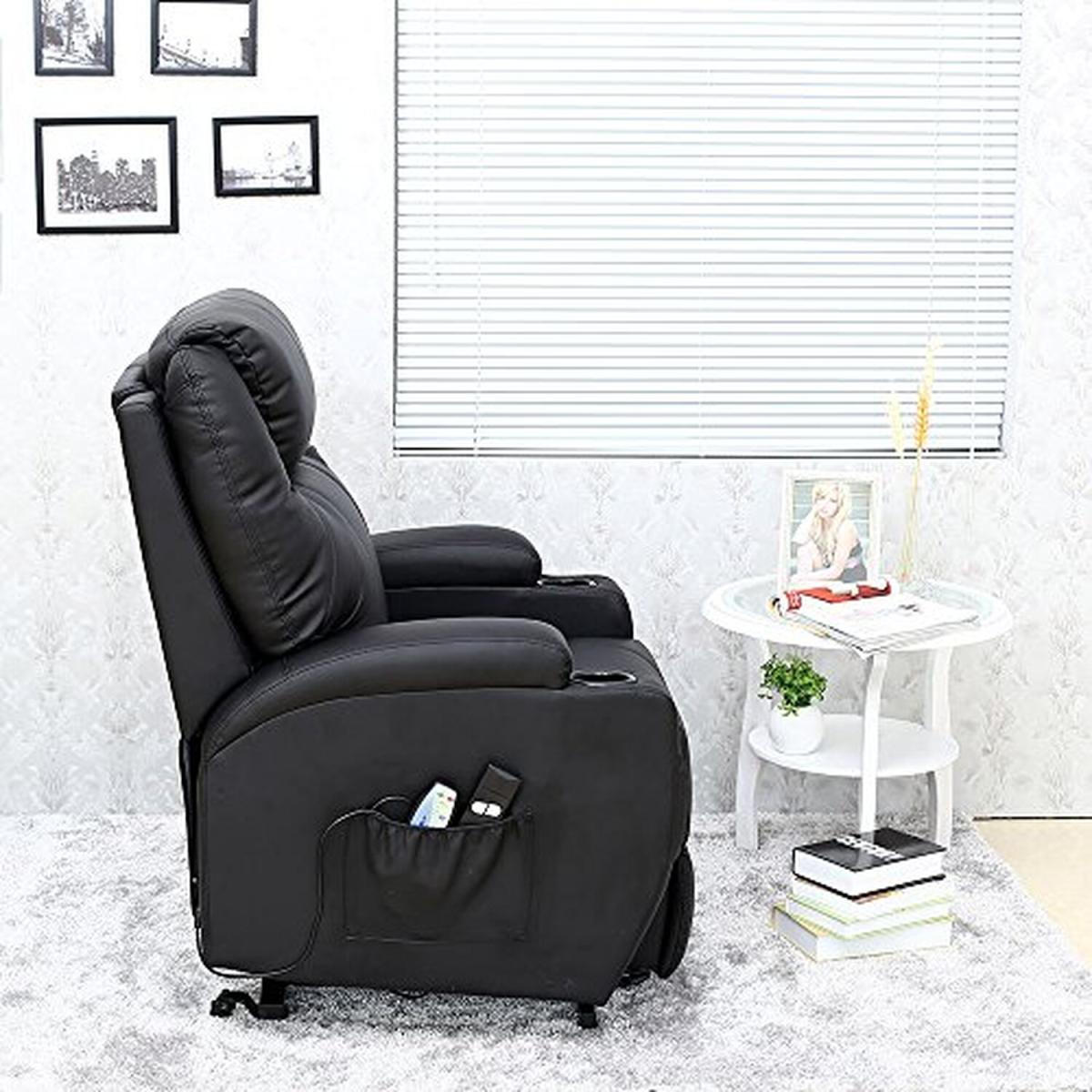 Easy to Use 2-Button Leather Electric Rise Recliner The Cinemo Riser Recliner Chair features a single motor mechanism and has been designed for ease of use. The simple to operate, two button handset allows you to either rise or recline your chair at the touch of a button. The rise function will enable you to raise the chair to an almost standing position, making ideal for those who require assistance when transferring to or from the chair. Whilst the recline function allows you to adjust the chair to a comfortable snooze position for ultimate relaxation. The Madison has been finished in a real leather (Bond Grade) effect upholstery for a modern and stylish appearance. In addition to its attractive appearance the leather upholstery also provides a convenient wipe clean surface for the user. br. All of our Recliners are supplied in two separate sections, the base and the backrest. This allows easy removal from the box and transport within the home, navigating doorways and staircases. Once situated, the backrest simply clips into the rear section of the base to allow instant relaxation and comfort in your new chair.
