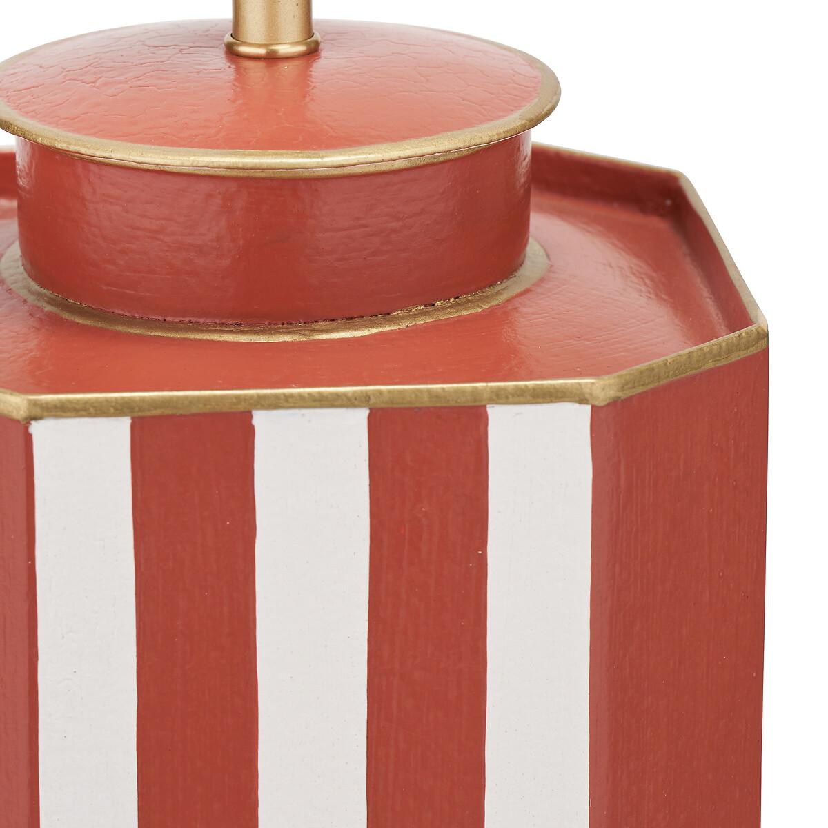 This stylish stripe design metal table lamp base in a contemporary white and cinnamon colour palette is sure to make a statement. The square-shaped base is the perfect vehicle to showcase the bold hand painted design, which is further accentuated with stunning gold accents. Crafted in India by artisans, this base will look fabulous with a range of lampshades, whether it be a tonal, white or cinnamon, or a contrasting black.
