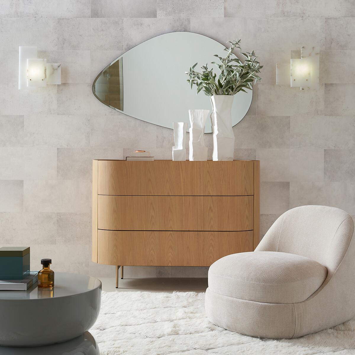 I love the organic shape of this mirror because it adds a soft, sculptural element to any space, making it a versatile piece for both contemporary and boho interiors. Its height makes it perfect for creating the illusion of more space and reflected light, especially in smaller rooms or entryways. To style it effectively, consider hanging it above a console table or sideboard, pairing it with neutral or textured accessories to emphasise its natural silhouette. For a more eclectic look, group it with other artistic mirrors or wall art to create an eye-catching focal point. This mirror works well in bathrooms, bedrooms, or living areas where you want a functional yet stylish piece that adds personality.