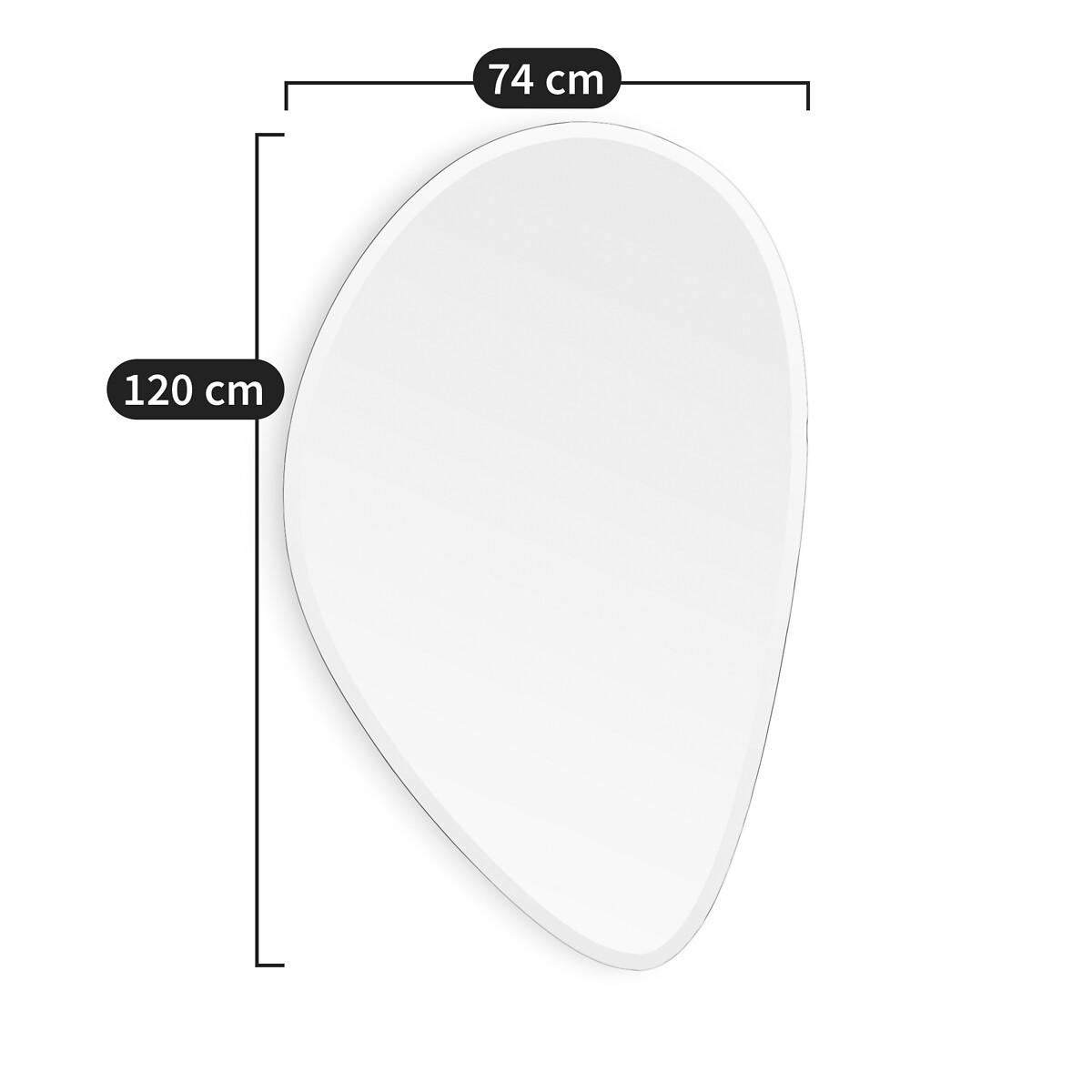 The Cinta mirror is a decorative piece with organic curves. Its ovoid silhouette gives the look of a drop of water suspended on the wall. The bevelled mirror is fixed on a black lacquered MDF structure. Cinta can be hung vertically or horizontally. An exclusive AMPM design. Product Details • Bevelled edge mirror • MDF structure chamfered and painted black • Fixing bars (screws and dowels not supplied) • Can be fixed horizontally or vertically to the wall Dimensions • Width 74cm • H120cm • Depth 1.6cm. Dimensions and weight of parcel • 1 parcel • L86 x D10 x H132cm