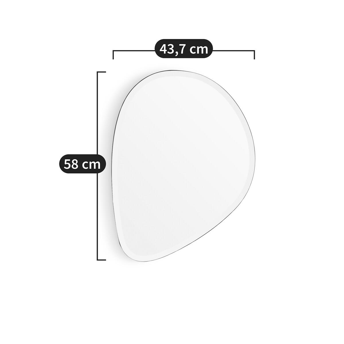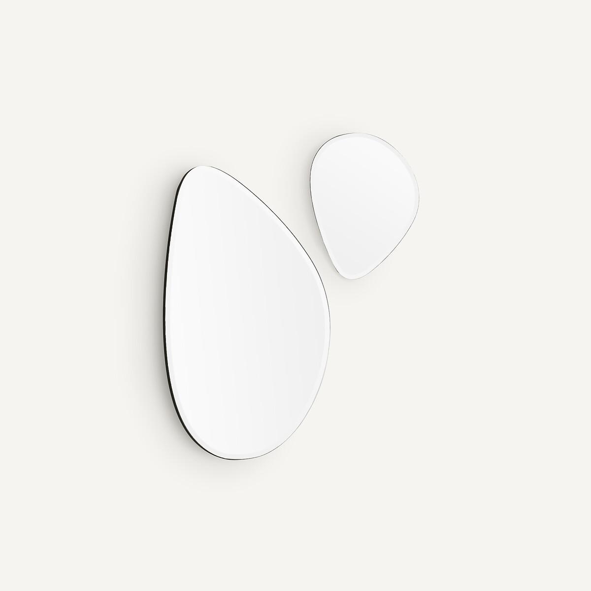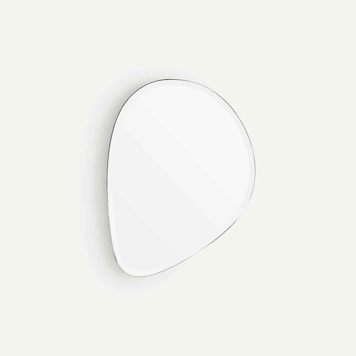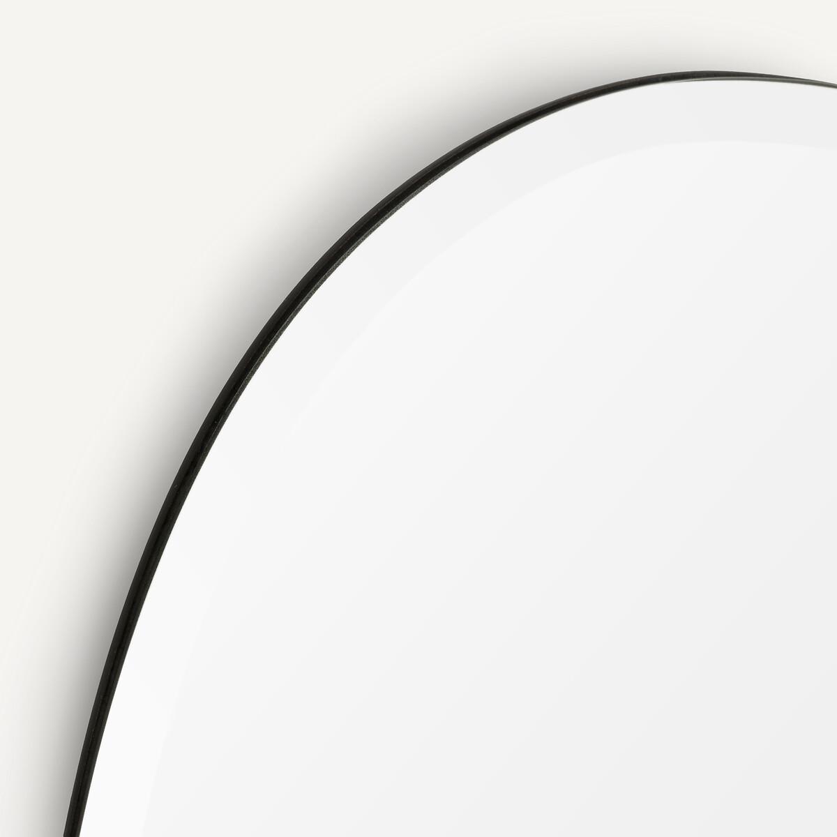 The Cinta mirror is a decorative piece with organic curves. Its ovoid silhouette gives the look of a drop of water suspended on the wall. The bevelled mirror is fixed on a black lacquered MDF structure. Cinta can be hung vertically or horizontally. An exclusive AMPM design. Product Details • Bevelled edge mirror • MDF structure chamfered and painted black • Fixing bars (screws and dowels not supplied) • Can be fixed horizontally or vertically to the wall Dimensions • Width 43.7cm • Height 58cm • Depth 1.6cm • Sold pre-assembled. Dimensions and weight of parcel • 1 parcel • L60 x D10 x H56cm