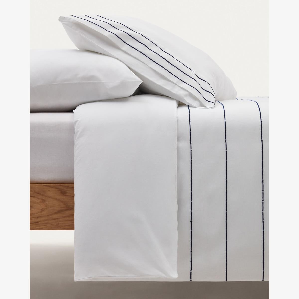 I love this duvet cover and pillowcase set because of its crisp cotton percale fabric, which adds a fresh, clean look to any bedroom. The striped embroidery detail elevates the style without overwhelming the space, making it versatile across both modern and traditional interiors. It works particularly well in minimalist bedrooms or schemes with neutral tones, where it can be styled with textured throws or layered with other bedding for a relaxed, inviting feel. Practical styling tips include pairing it with natural materials like linen or wicker and keeping accessories understated to let the simple elegance of the striped embroidery shine through. Overall, it’s a reliable choice for creating a calming, polished sleeping space.