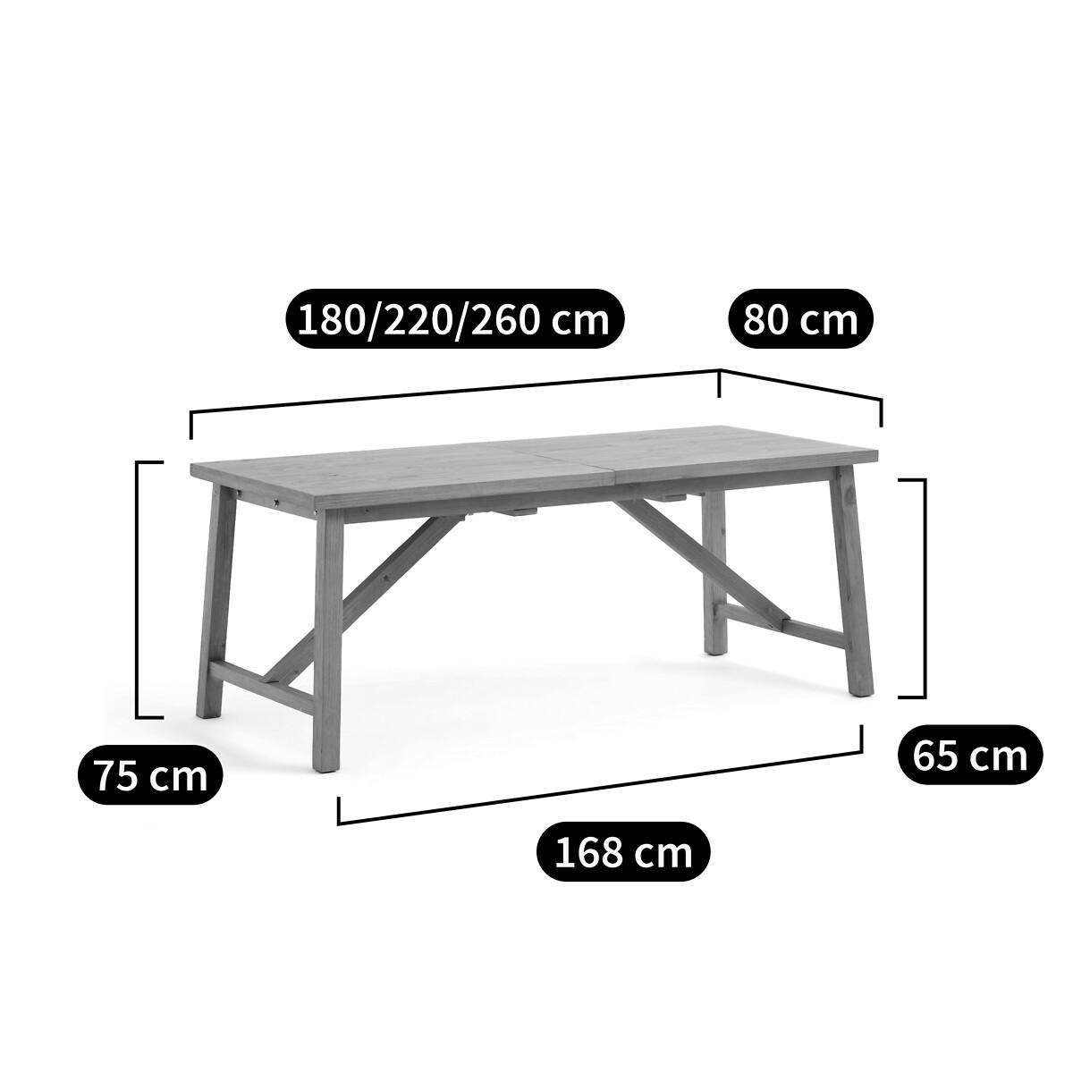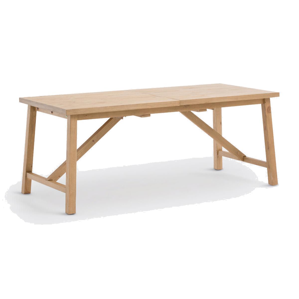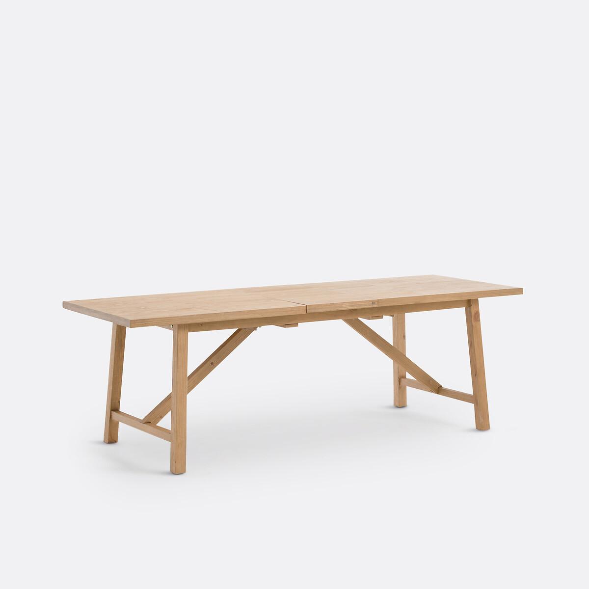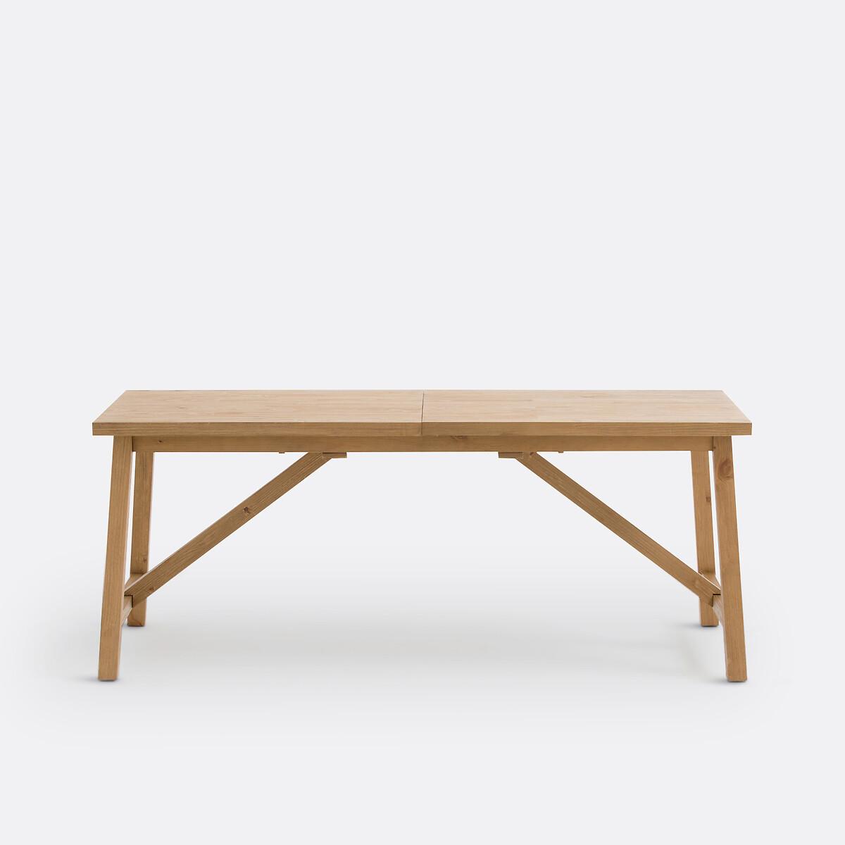 Generous dimensions and study desk-type base. Cinto adapts to any situation and any number of guests thanks to its 2 extensions of 40cm, allowing to accommodate up to 8 diners. Practical, the extensions can be stored easily under the top. Designed by La Redoute Interiors. Product Details • Seats 6 to 8 • In lightly brushed solid pine, oak stained, nitrocellulose varnish finish • 2 removable extensions of 40cm each (stored under the top) • Metal sliders • Plastic feet padsDimensions. Overall • Length: 180 / 220 / 260cm • Height: 75cm • Depth: 80cm • Space between legs: 168cm • Height between floor and frame: 65cm. • Assembly required. Dimensions and weight of parcel1 parcel • L189 x H20.5 x D88cm, 47kg.