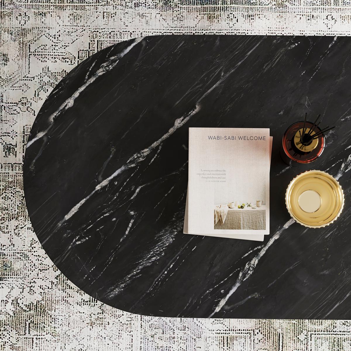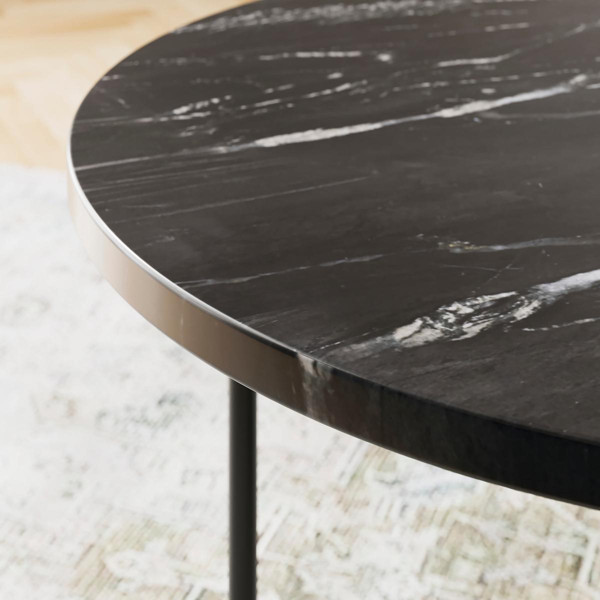 * Marble top* Metal Legs* Easy to assemble Crafted with a combination of marble top and elegant metal legs, this coffee table effortlessly merges functionality with aesthetics, offering more than just visual appeal. Assembly is a breeze with the Cinzia Coffee Table, ensuring your convenience from setup to maintenance. Its sleek design and easy-to-clean surface allow you to maintain its pristine appearance effortlessly, promising to be the focal point that ties your space together with sophistication and functionality. We would like to remind our customers that marble is a natural stone, and as such, no two tables will be exactly alike and the product you receive may not exactly match the image shown on our website. Every piece of marble has its own unique variations in colour, veins, fissures and pores, which adds to its beauty and character. Any slight openings in the fissures are normal and not considered a defect. Please follow our care instructions to keep your product in its best condition: As a soft stone, marble can be susceptible to chips, cracks, scratches, and discoloration, so it's important to care for it properly. We recommend cleaning the table with a damp cloth using warm water or a specialist marble cleaner, then buffing it dry. Please remember that marble surfaces are porous, so it's crucial to remove spillages immediately to avoid stains, and we recommend using coasters and place mats to protect against heat and moisture. Do not use knives to cut food on the marble tabletop, use it as a work top, place heavy weights on it, or use acidic or abrasive cleaners. Just like glass, you should never sit or stand on a marble surface.