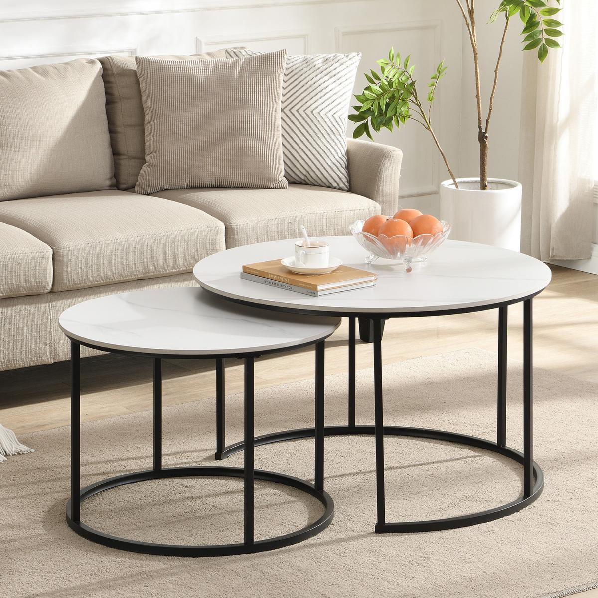 The Circa Nesting Tables - Set of 2 are the perfect blend of style and functionality for any modern living space. Featuring circular tables with diameters of 80cm and 60cm and heights of 50cm and 45cm, this versatile set can be arranged together or separately to suit your needs. Each table boasts a stunning white marbled effect ceramic top, offering a sophisticated, luxurious look, while the black powder-coated frames ensure a sleek, durable finish. Ideal for use in living rooms, offices, or as accent pieces, these tables are perfect for adding extra surface space or displaying decor. Plus, with our quick and efficient delivery, upgrading your home has never been easier.