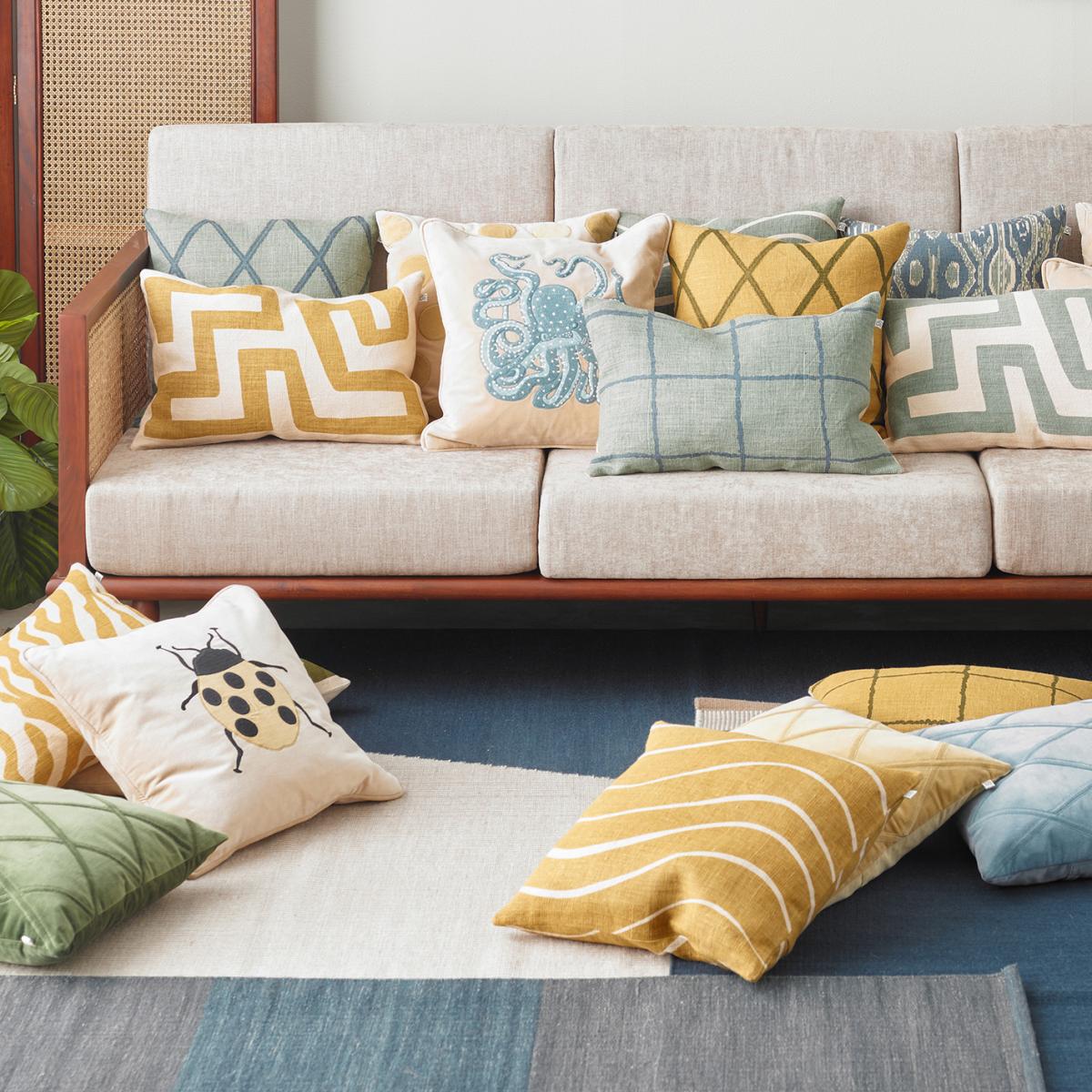 I love this cushion cover for its subtle yet playful design. The beige-spicy yellow tones add warmth and a touch of colour without overwhelming a space. It works particularly well in Scandinavian-inspired interiors, but can also brighten up more neutral or subdued colour schemes. Practical styling tips include mixing it with textured throws and other cushions in complementary shades or patterns to create layered, inviting arrangements on sofas or armchairs. Its 50x50cm size makes it versatile for various seating areas, and the softer colour palette makes it a great choice for creating a cosy, welcoming atmosphere.