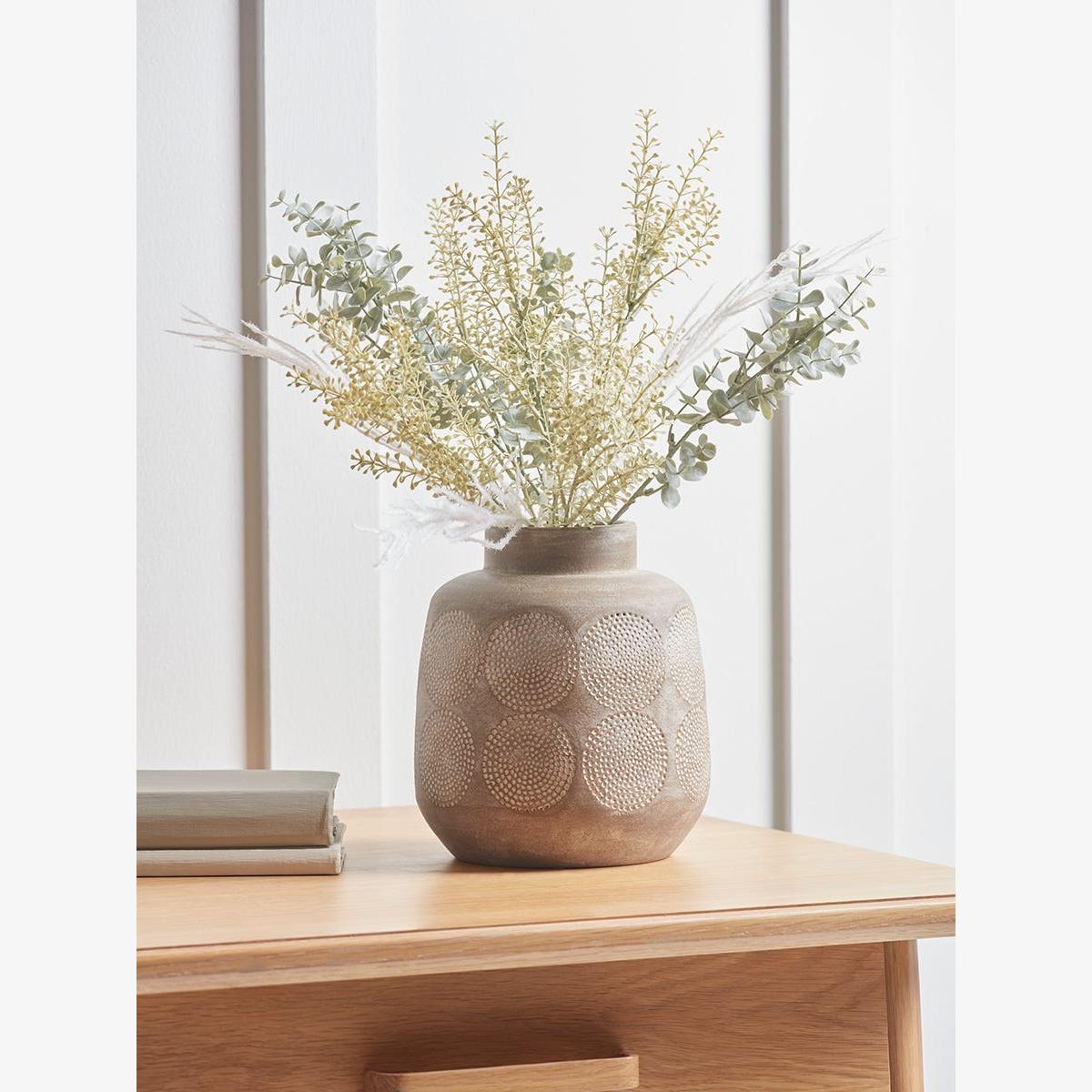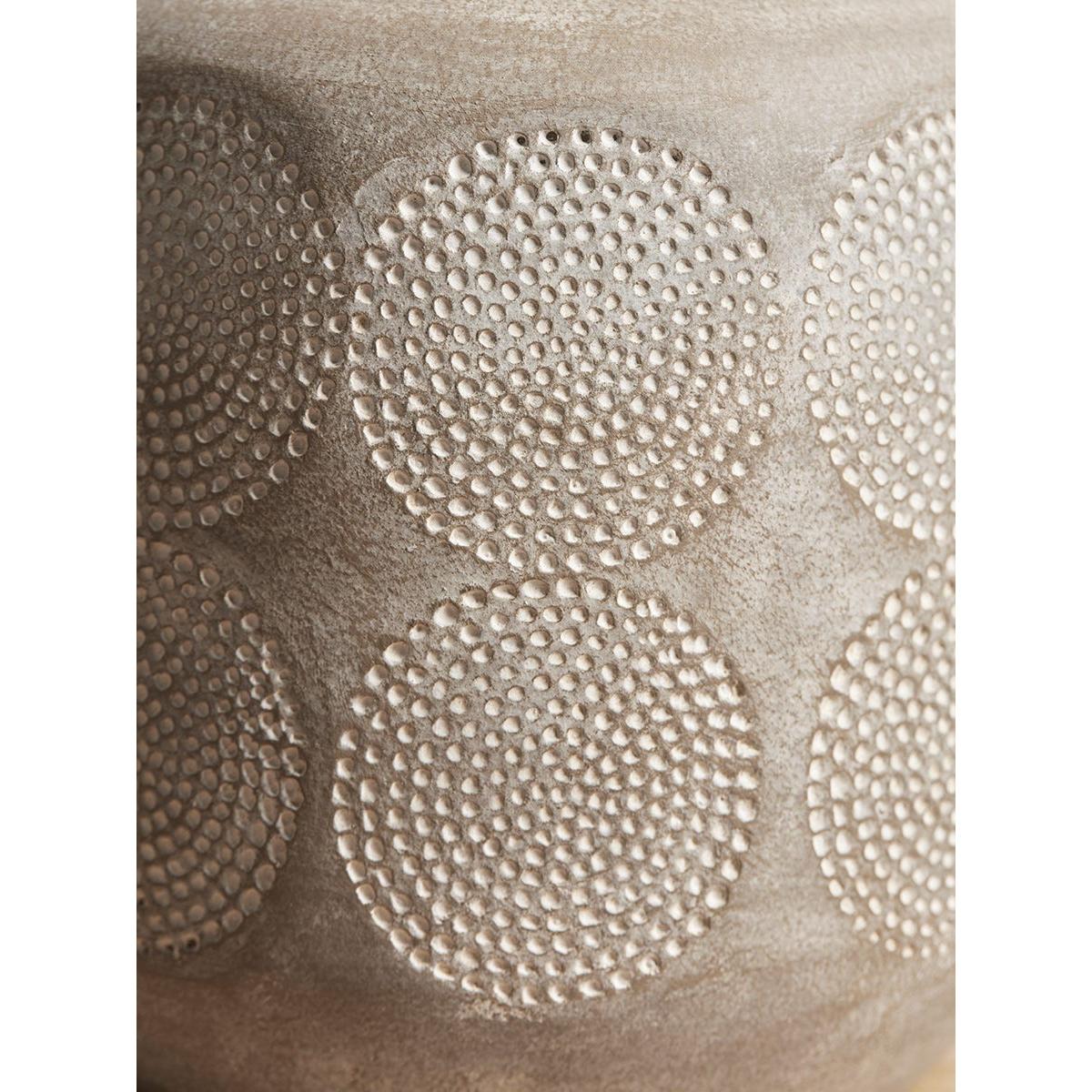 Warm toned and textural with a sturdy silhouette, there’s a charming, earthy appeal to this ceramic vase. Decorated with a circle design made up of embossed dots, it offers laid back style in any setting. Fill with dahlias cut from the garden or enhance the neutral tones with a bouquet of our dried flowers and grasses.