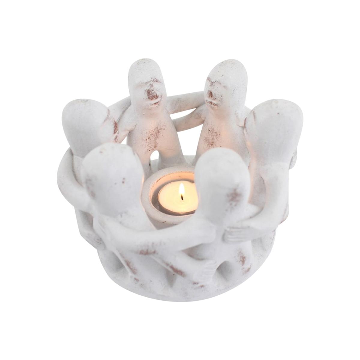 Circle of friends candle holder in an unglazed ceramic finish. Tea light sits neatly in the centre of the circle.